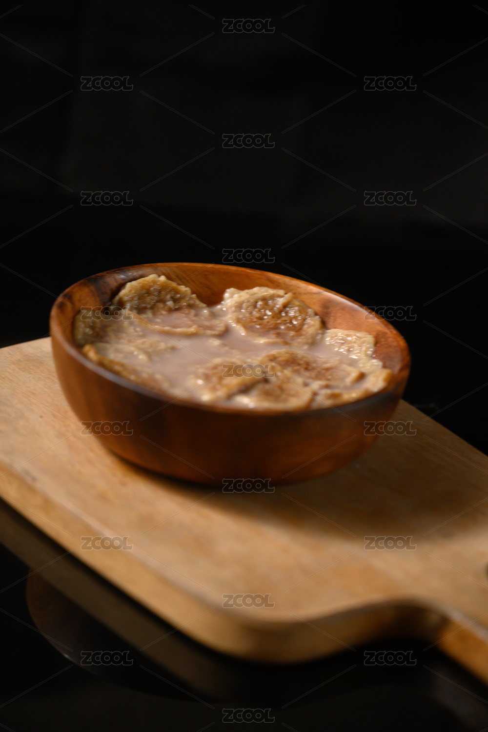 桌面上的盘子里的美味可口的巧克力鹰嘴豆片
