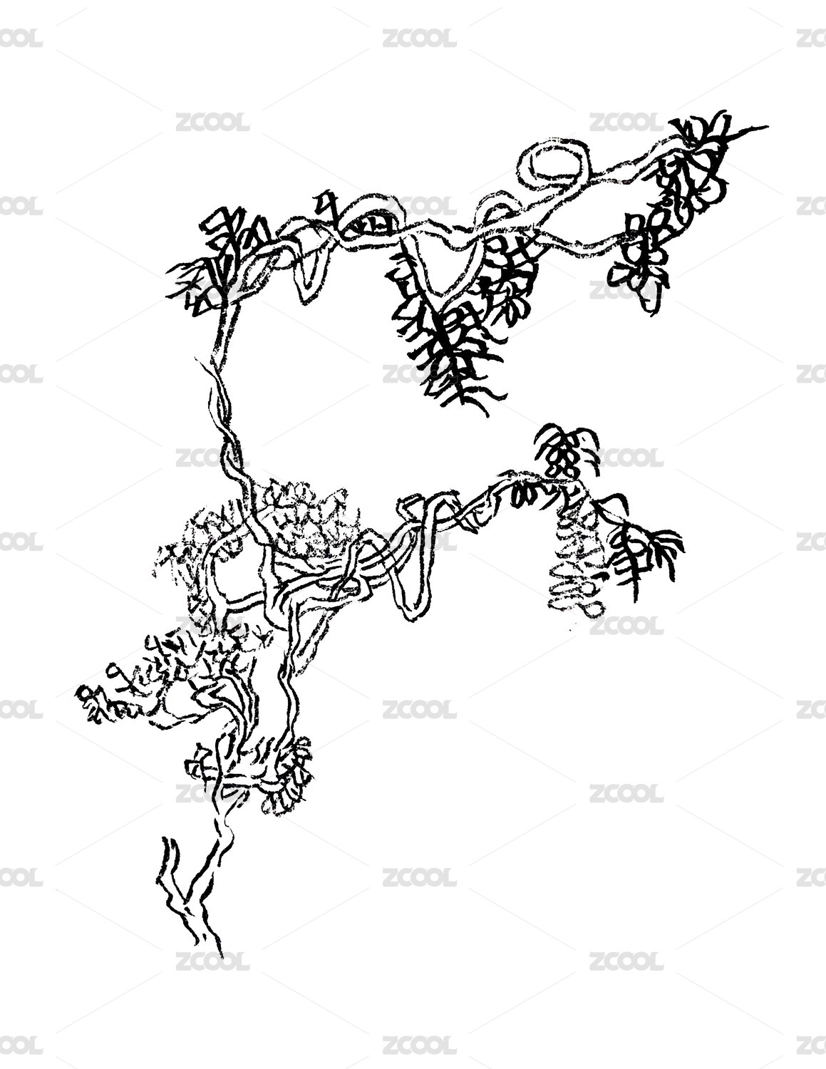 手绘枯树树树干素材扫描文稿