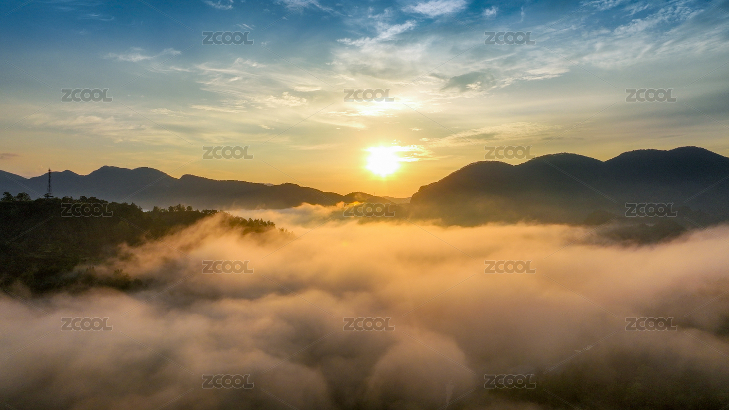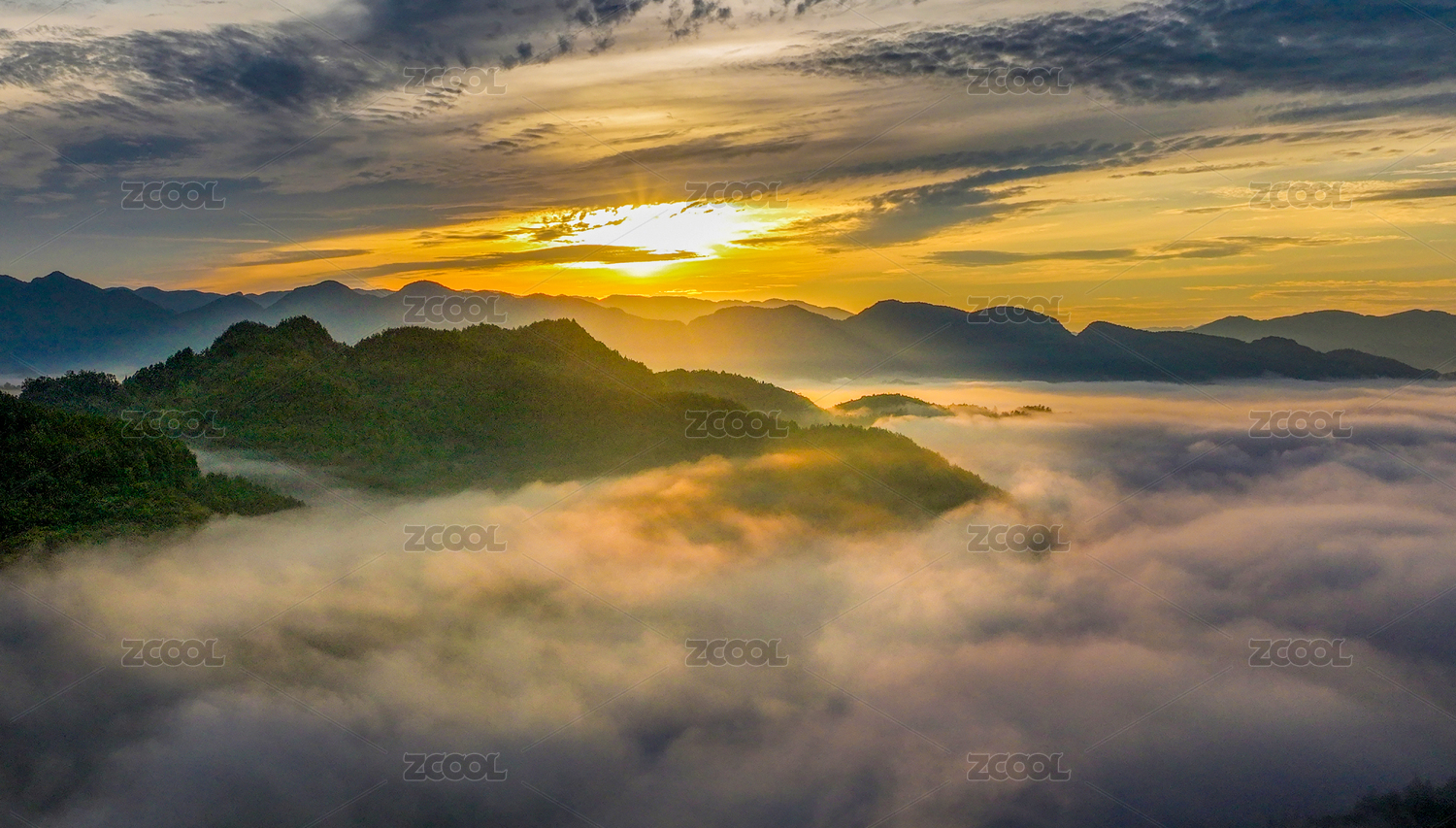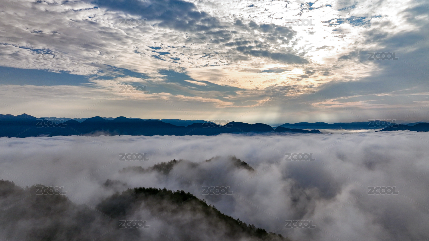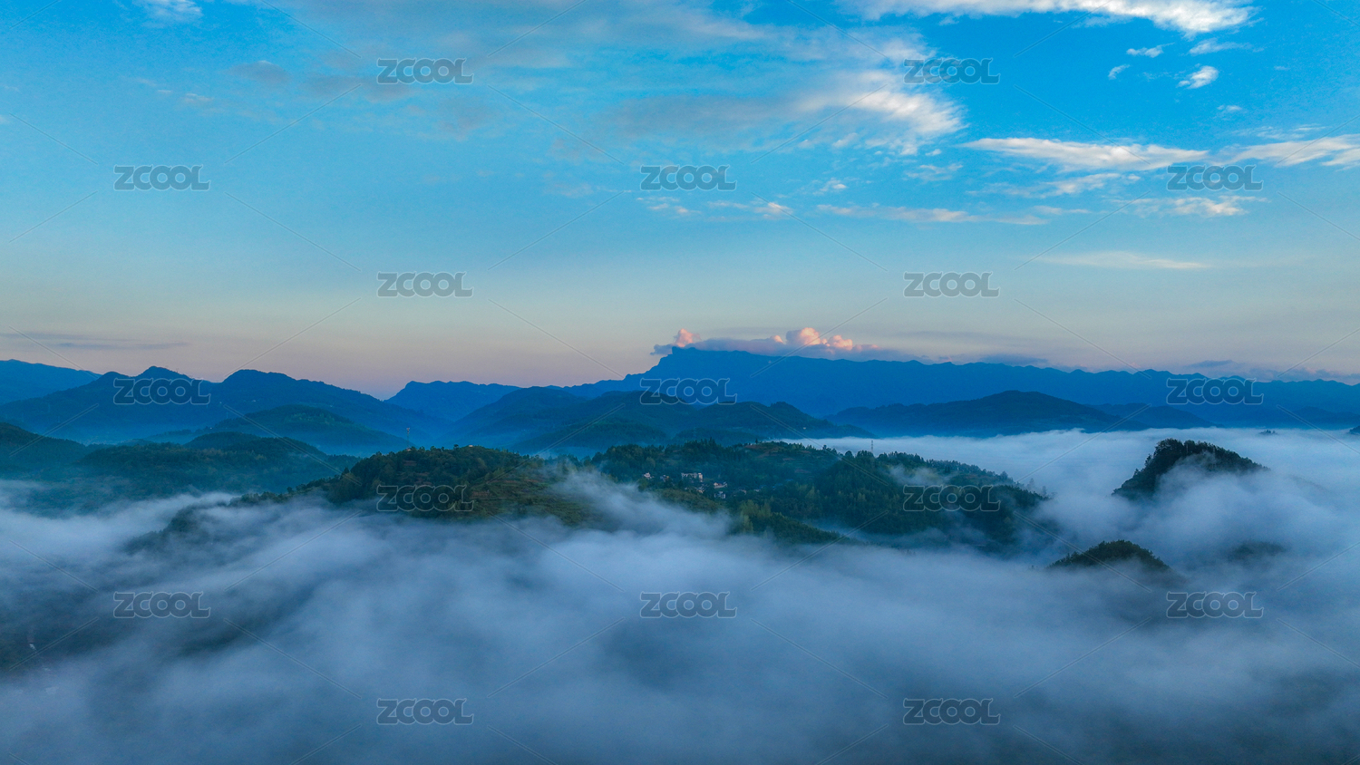 亚洲,中国,重庆,武陵山区,秋天,清晨,雾气,群山,如鳞甲的云,乡村