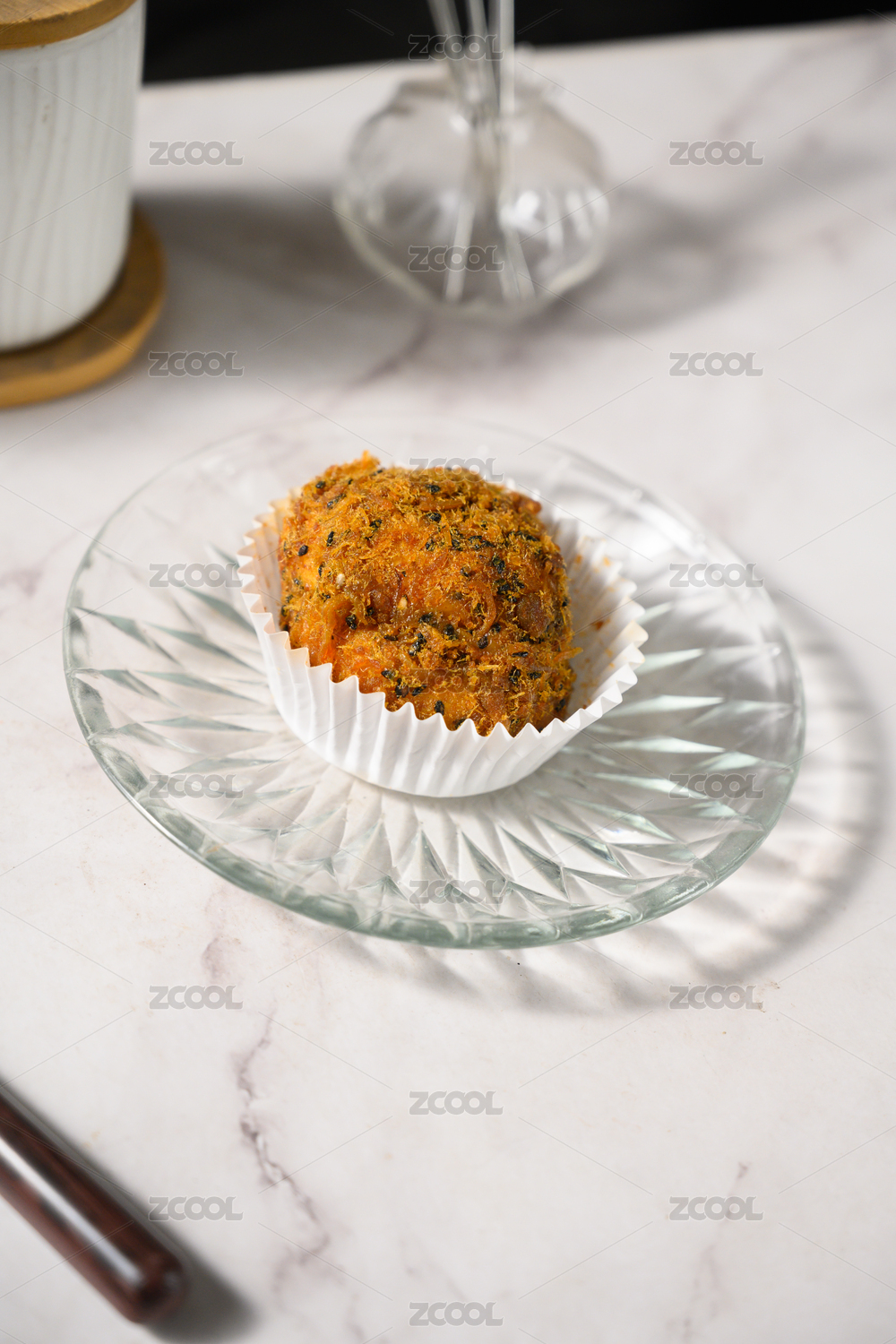 桌面上的盘子里的美味可口的芒果雪媚娘