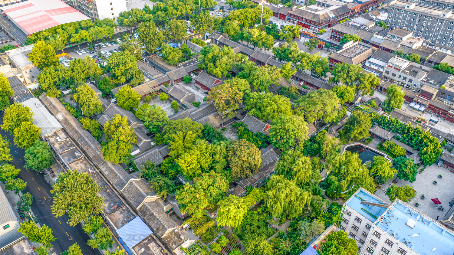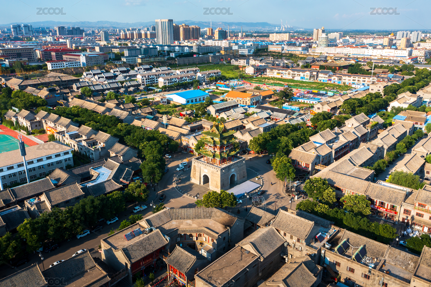 常山公园,正定县,正定古城,河北省,石家庄市,无人,旅游目的地,建筑外部,城市,航拍视角