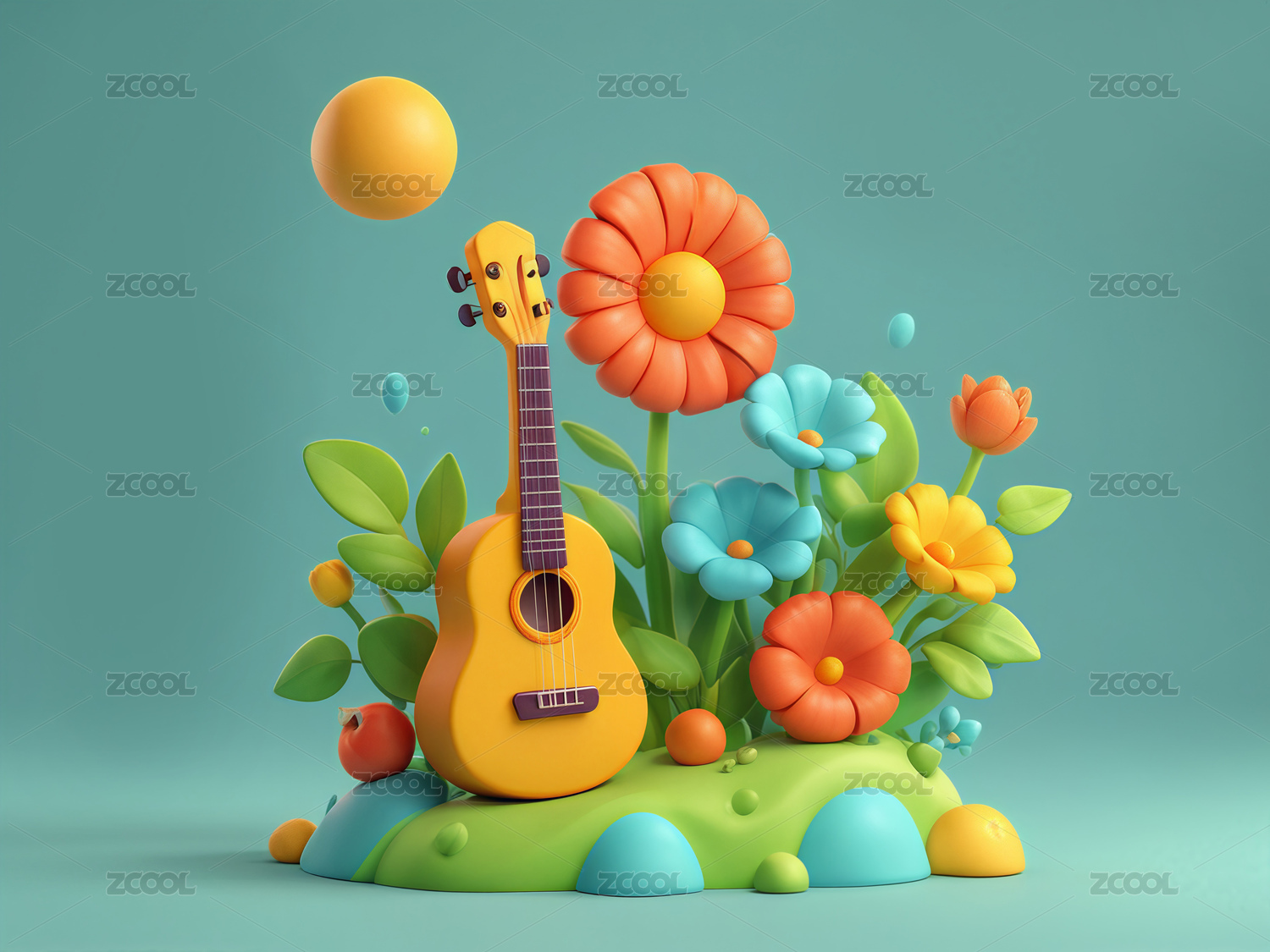 卡通,蓝色背景,装饰,清新,创意,艺术,吉他,淡绿色,音乐,舞台