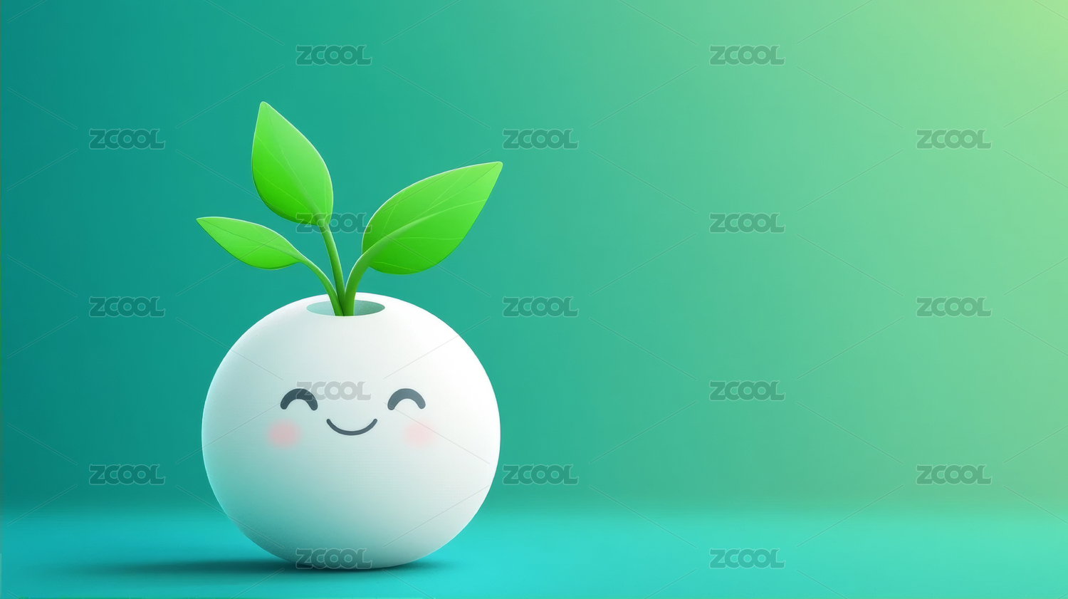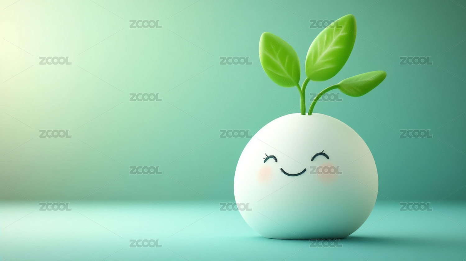 绿色卡通植物精灵微笑形象