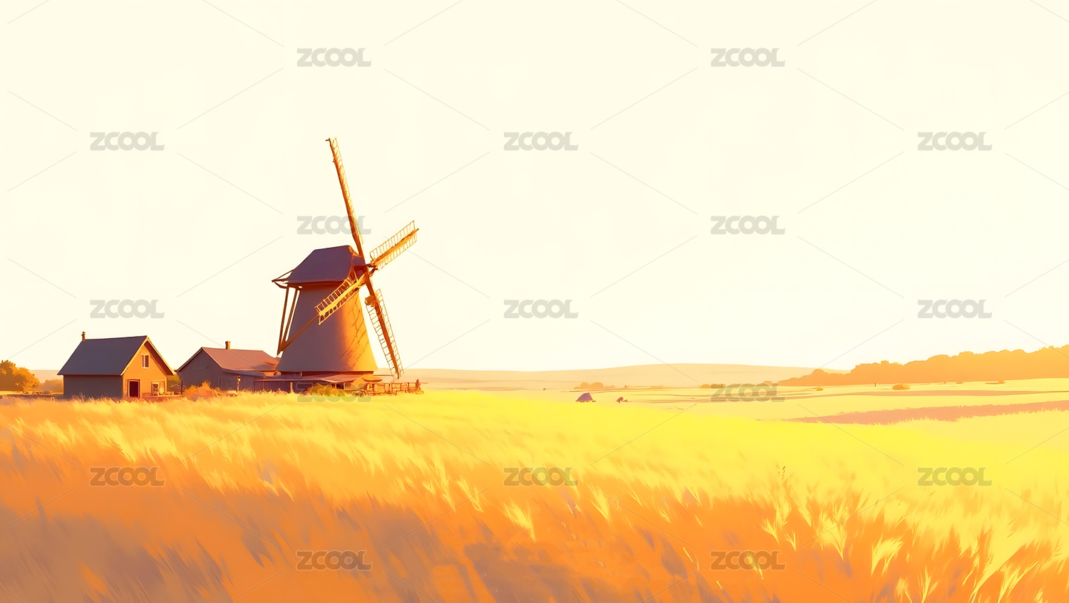 蓝天,宁静,乡村,田园,浪漫,秋季,风景,自然,金色,阳光