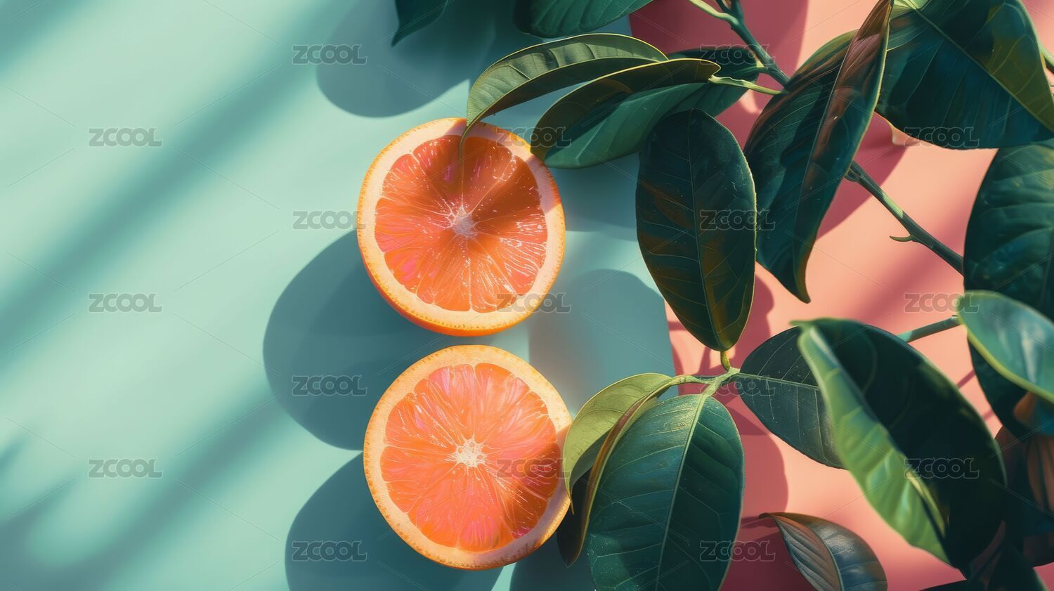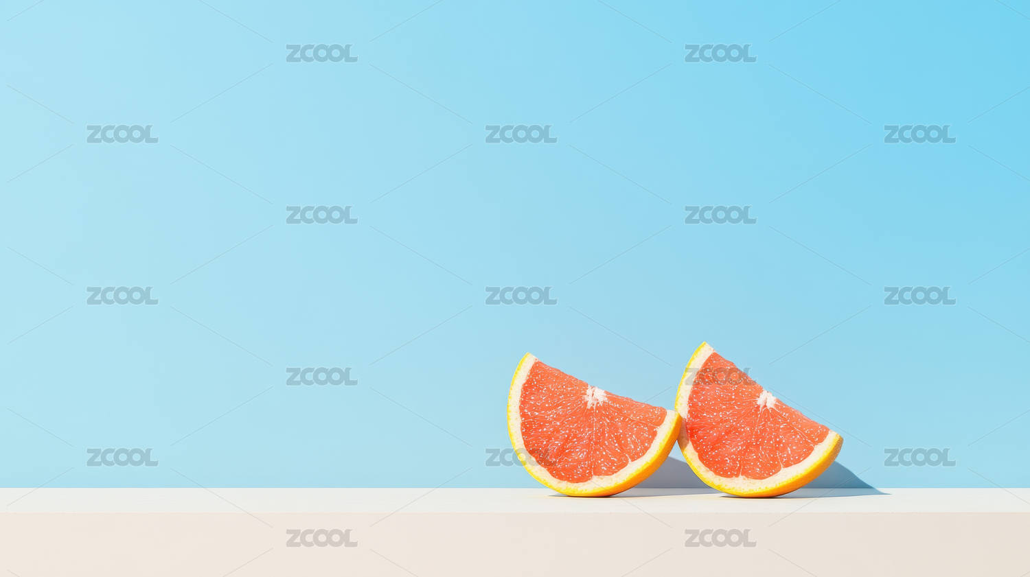 蓝色背景,水果,夏季,健康,新鲜,葡萄柚,切片,白色桌面,多汁,维生素C