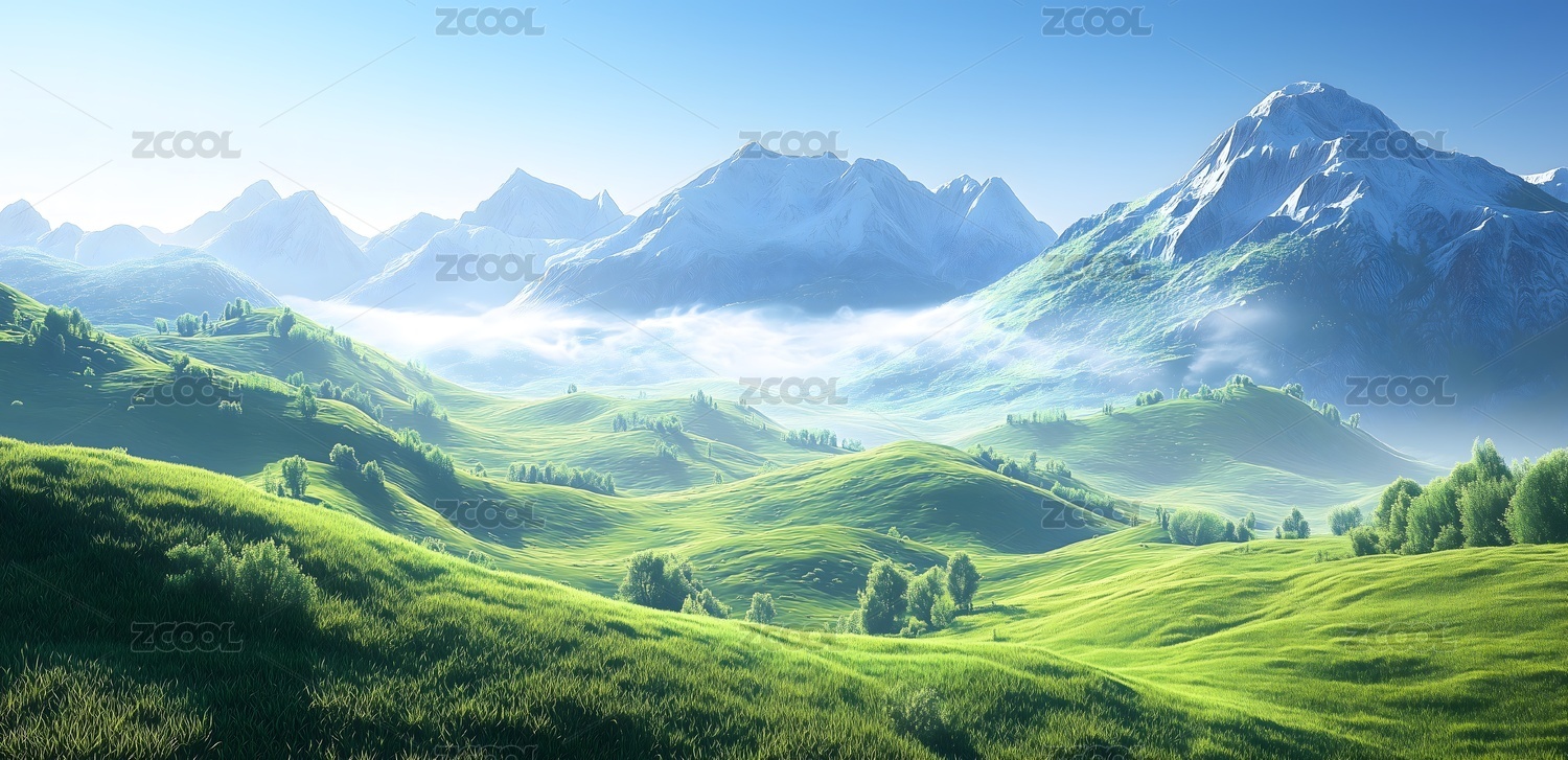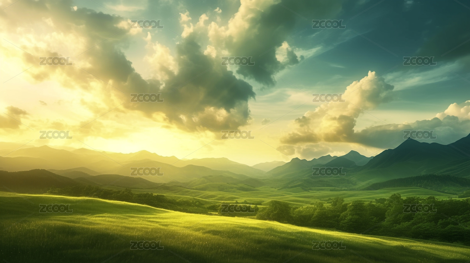 宁静,美丽,自然,风景,景观,树木,田园,草地,阳光,绿色