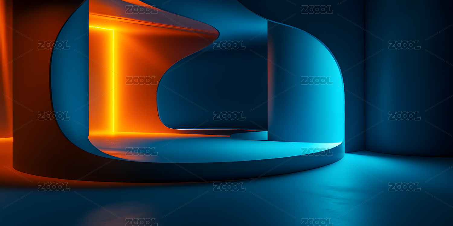 抽象霓虹灯发光几何线条3D渲染商务背景