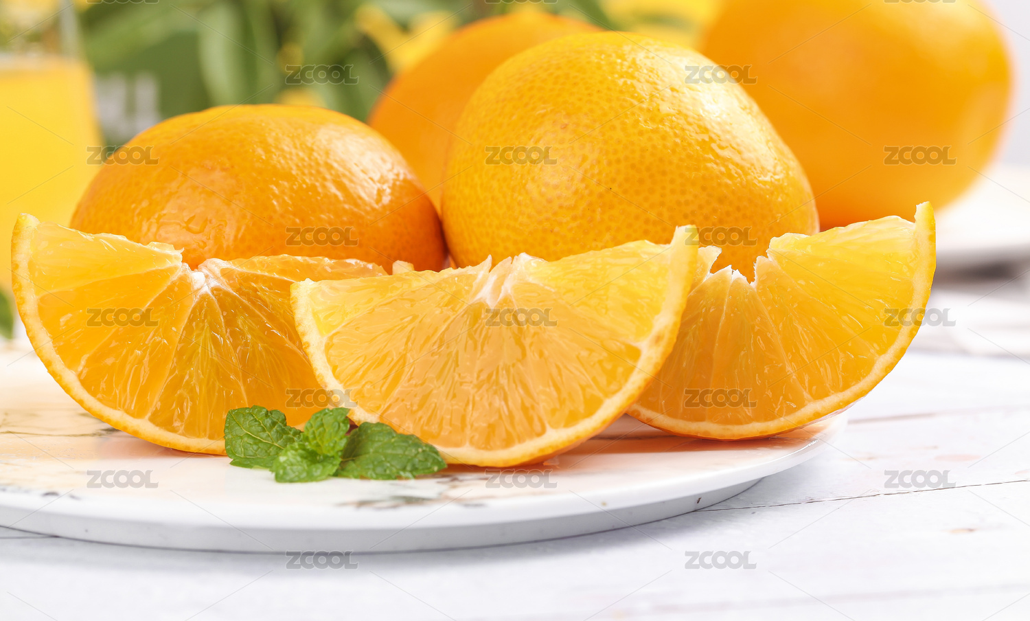 白木纹底上放着一盘麻阳冰糖橙和切块的橙子