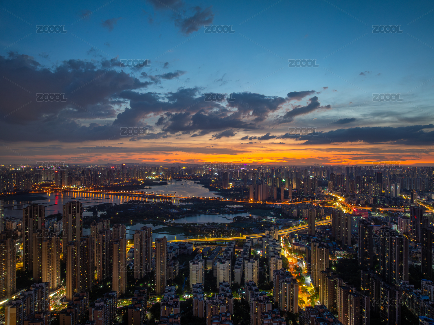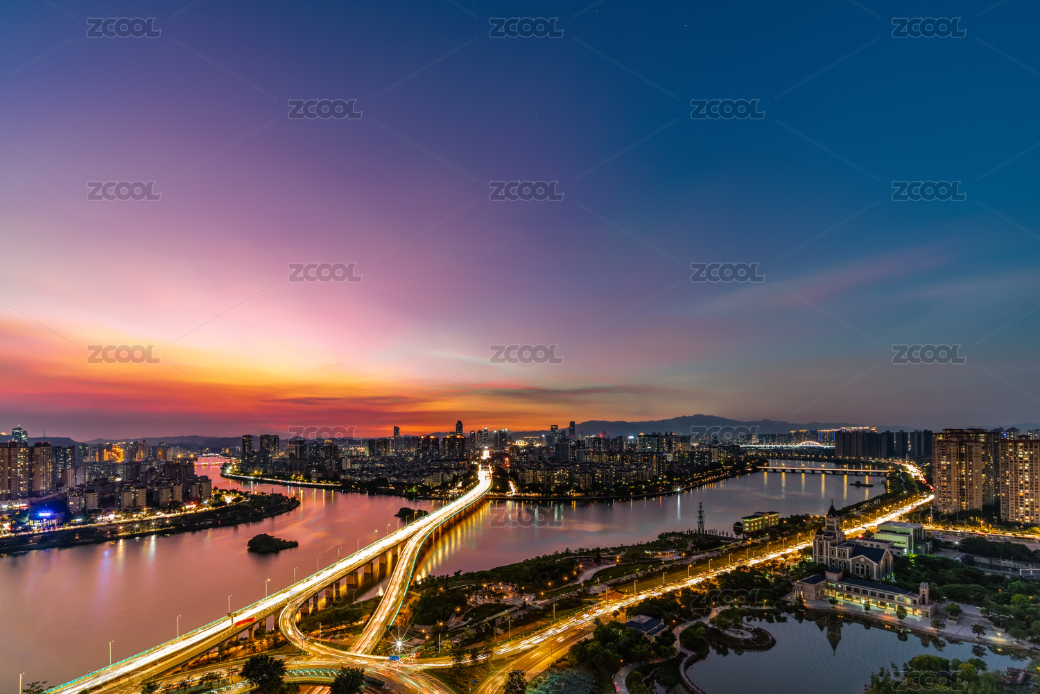广东省珠海市白石桥城市风光晚霞夜景