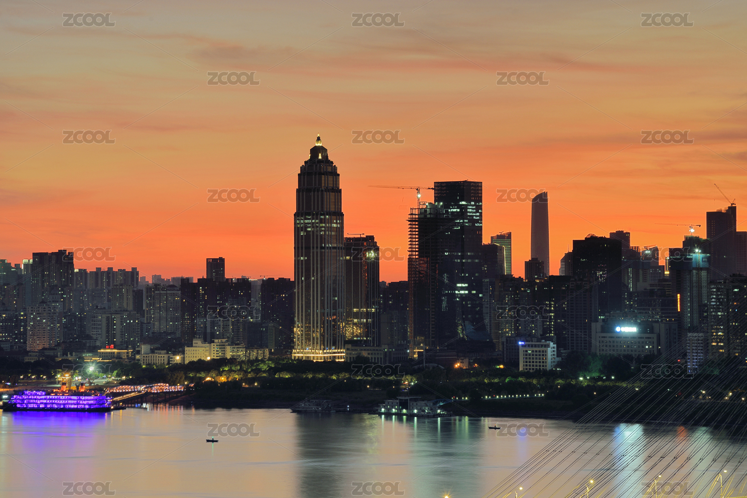 武汉城市地标天际线夜景风光