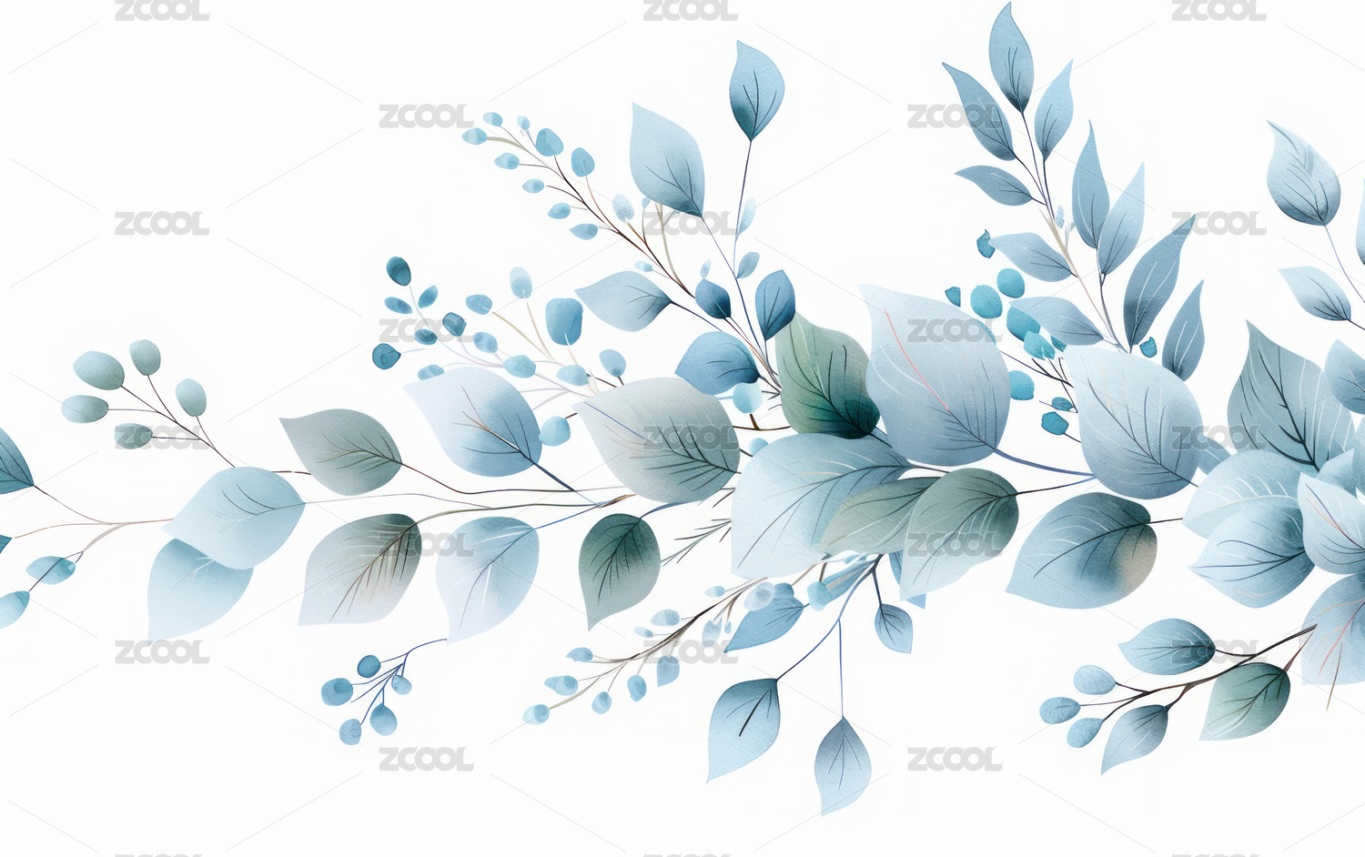 蓝莓枝叶水彩插画