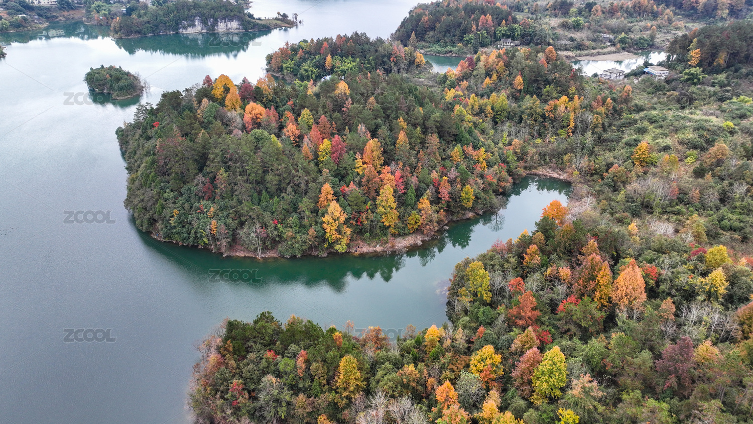 航拍晴朗秋天四川成都崇州白塔湖水库