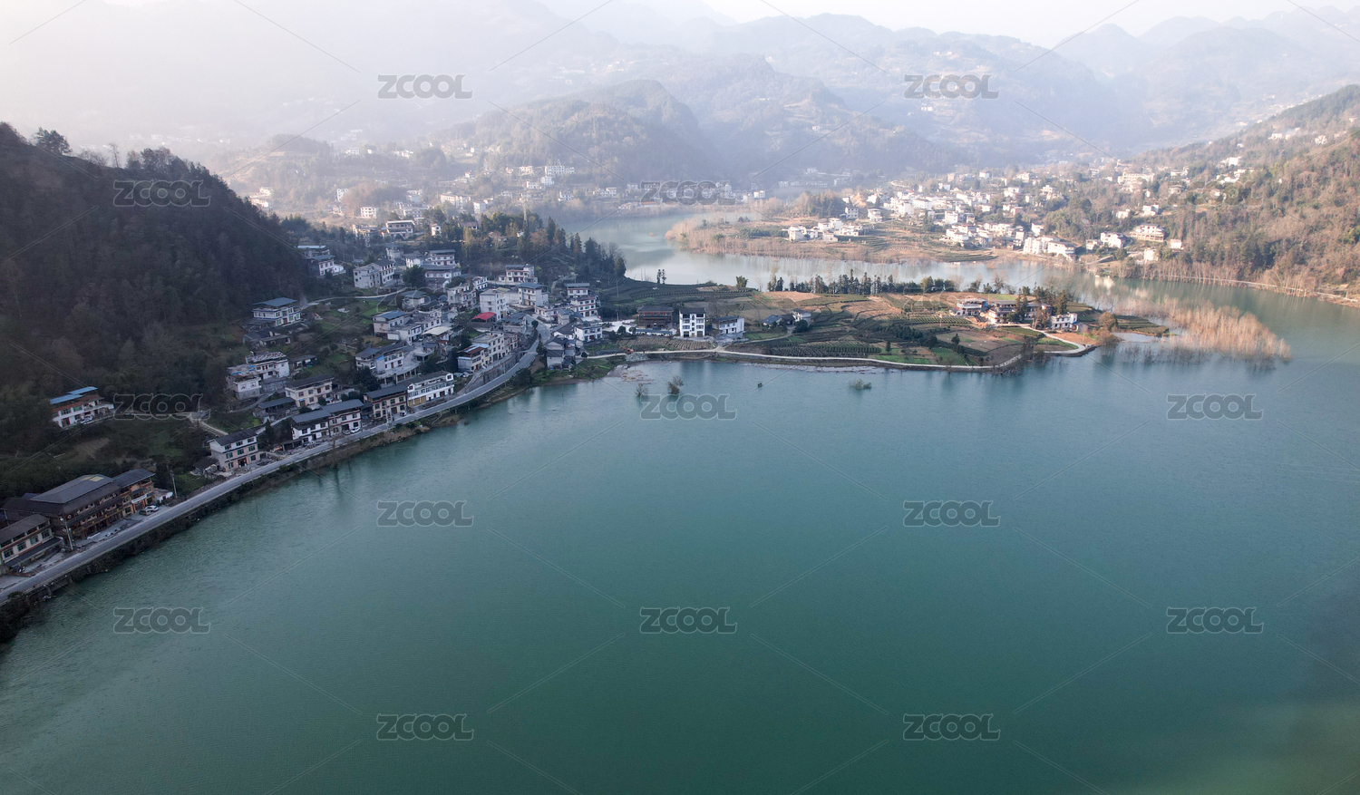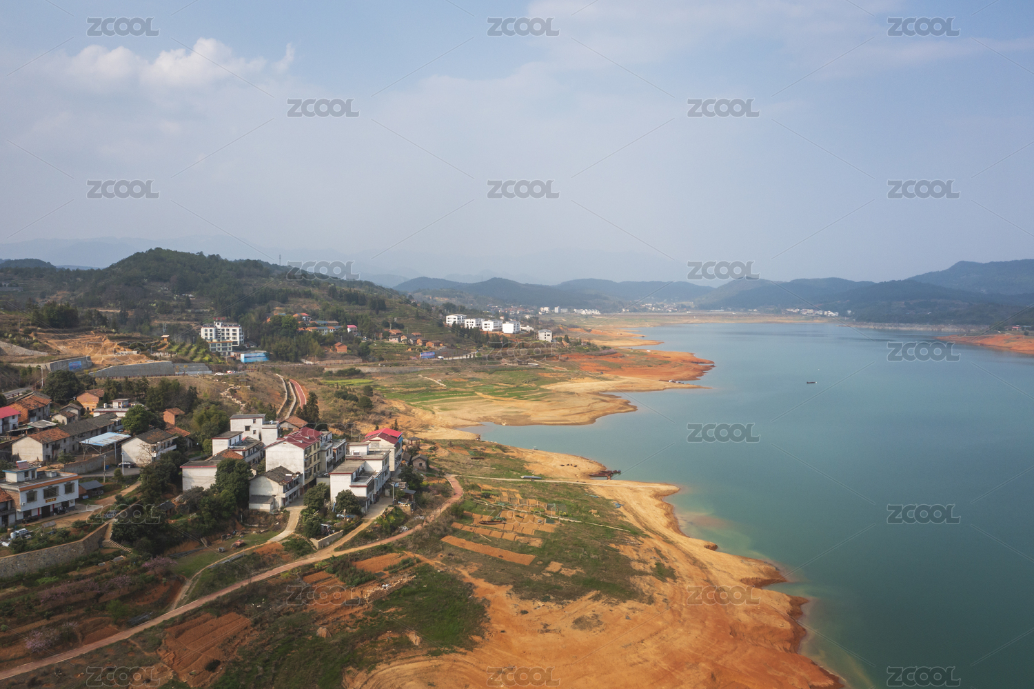 航拍,湖南,郴州,东江湖,小东江,岸,湖,河流,建筑,村庄