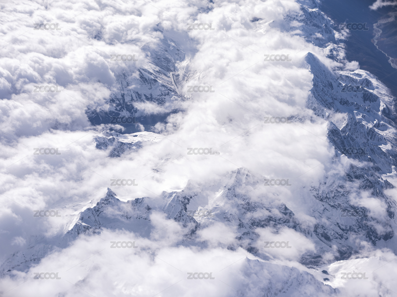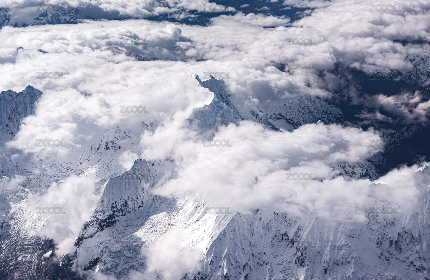飞机上拍摄的雪山与云层
