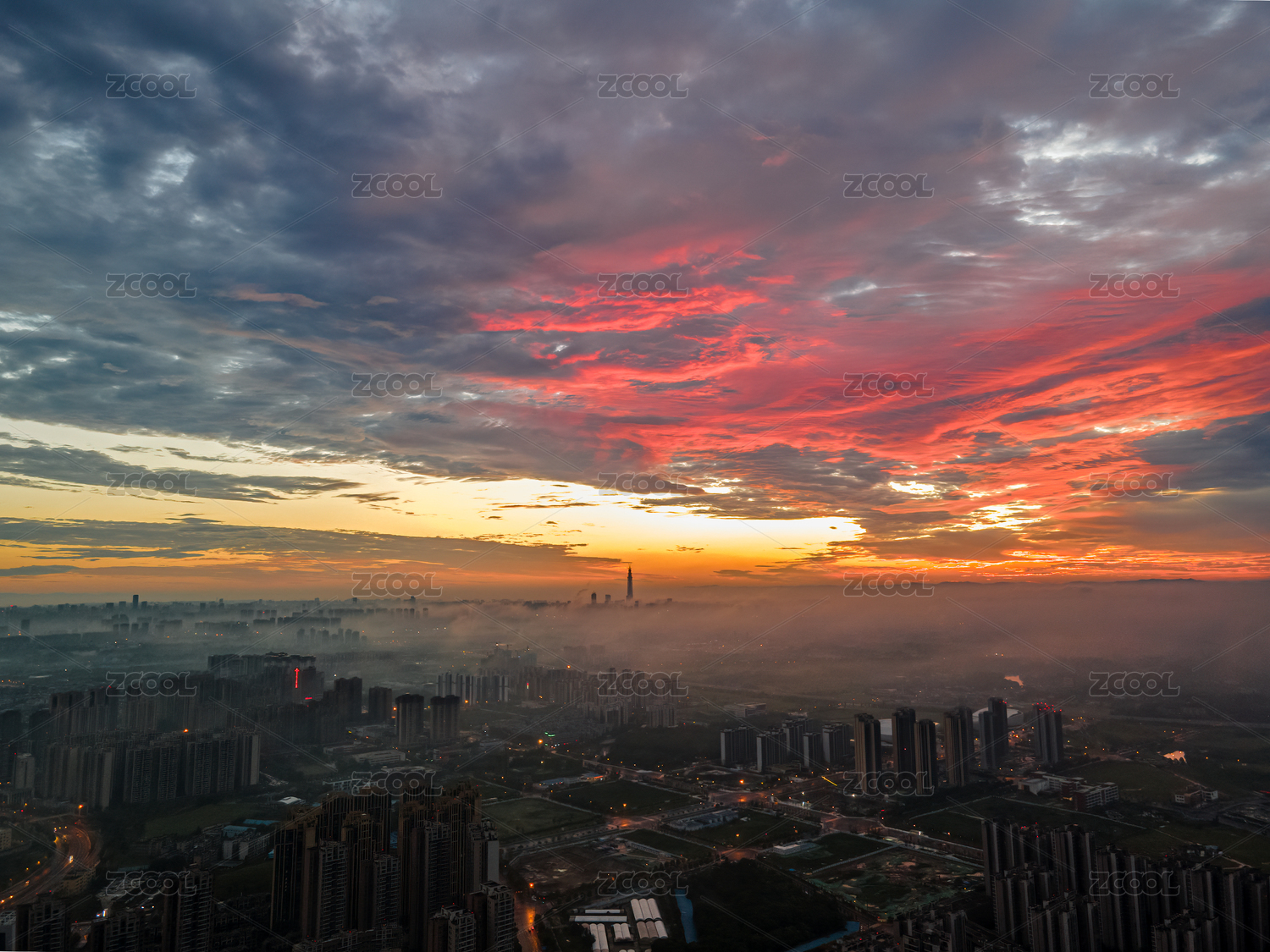 航拍高新全景魔幻火烧云