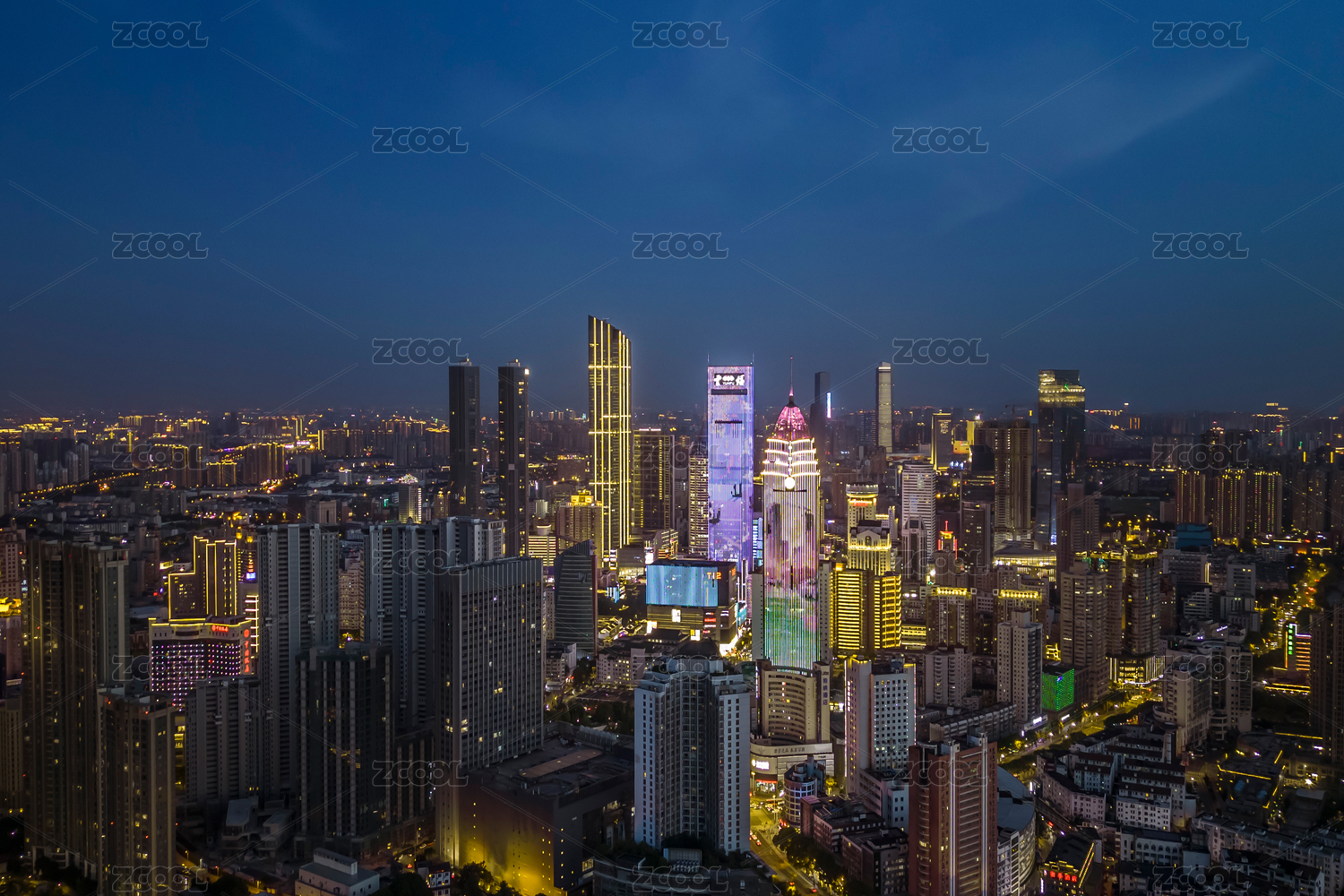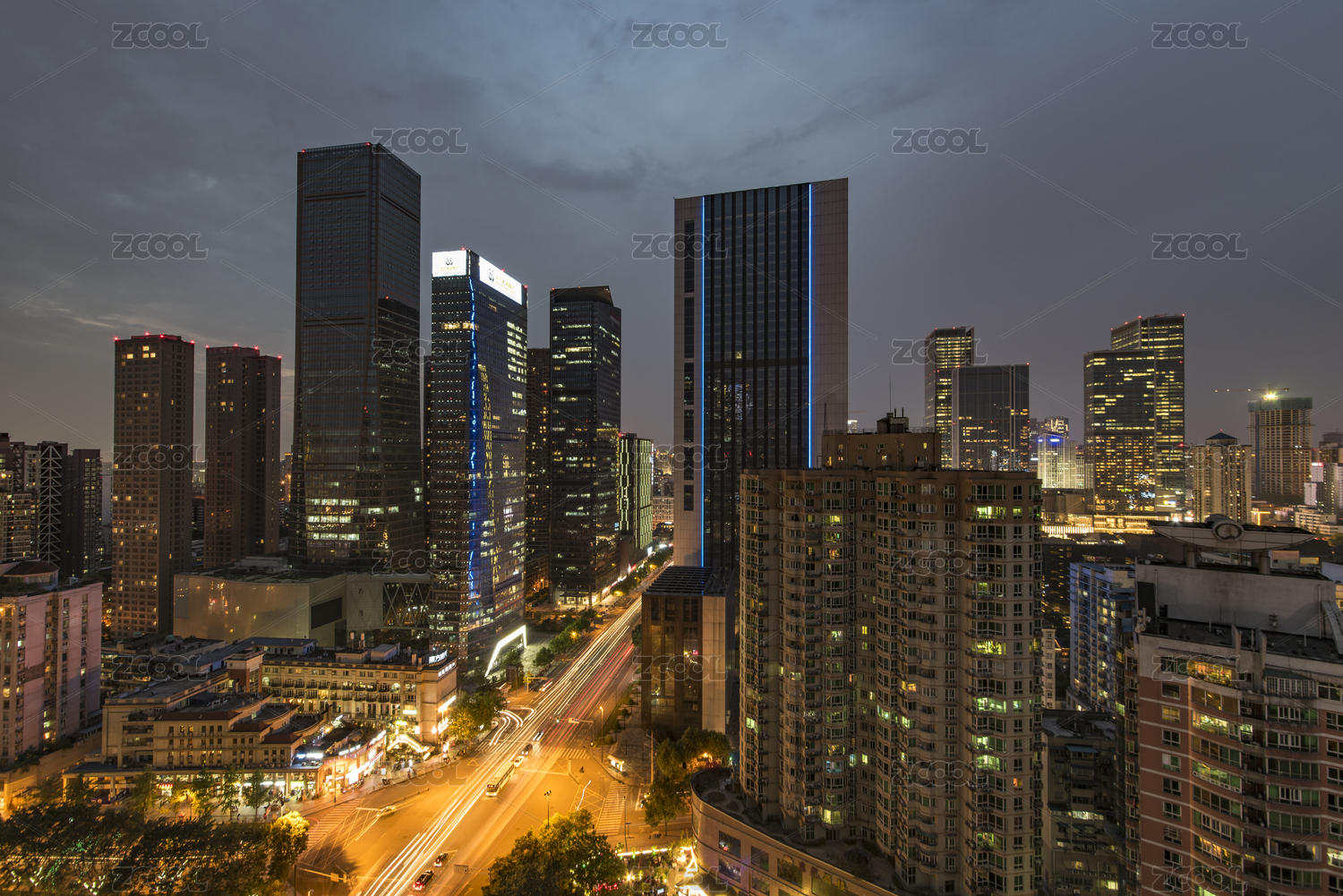 中国四川省成都市市中心CBD周边现代建筑夜景