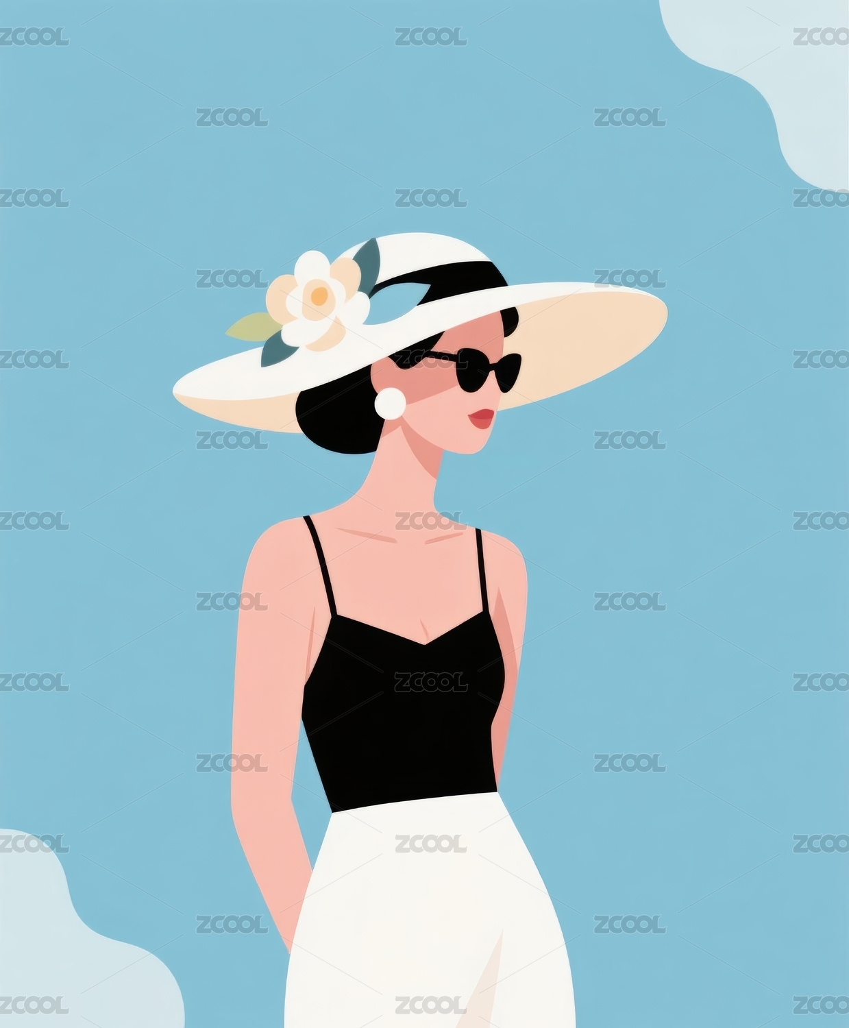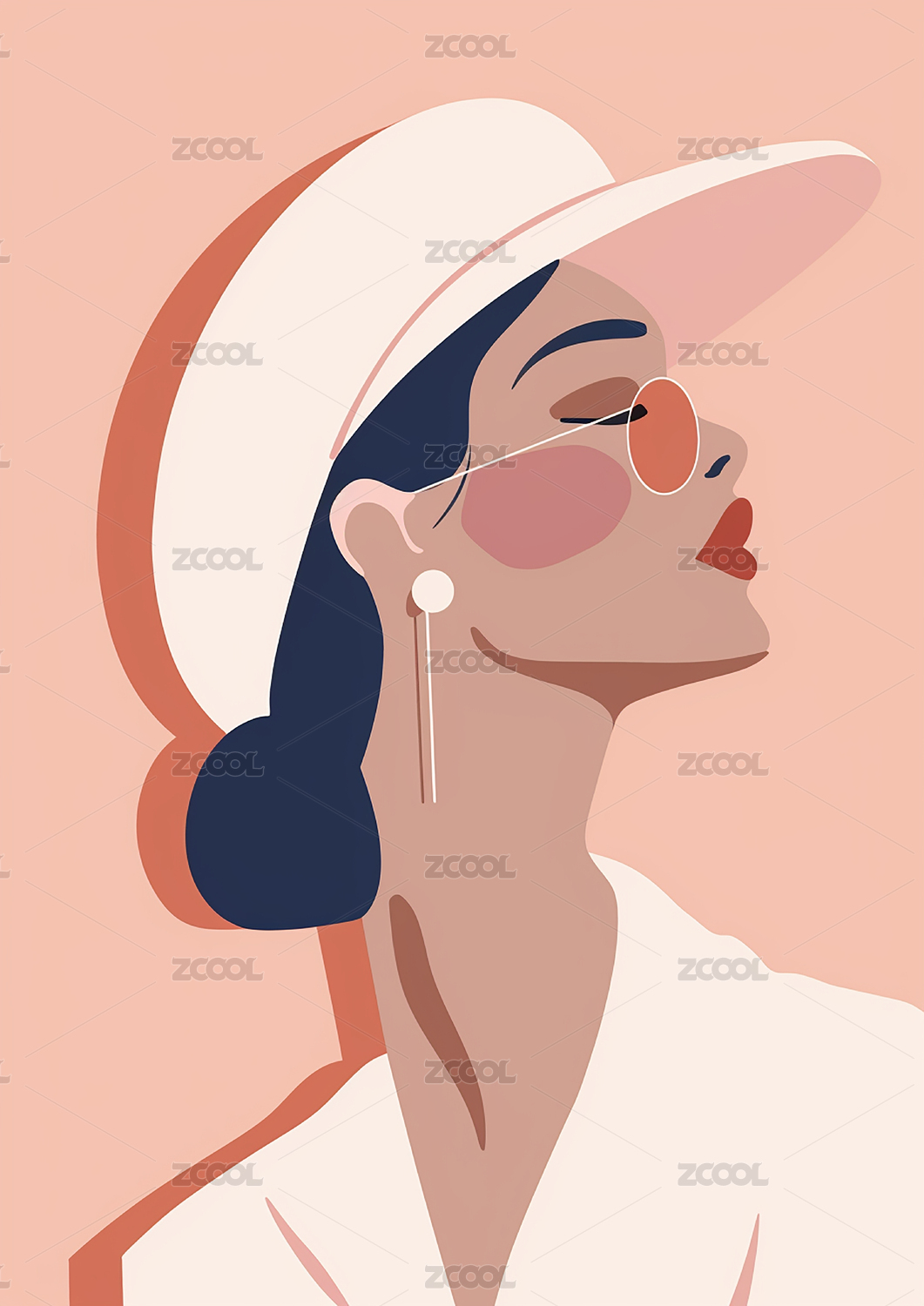 时尚女性扁平装饰画肖像画插画图案印花素材