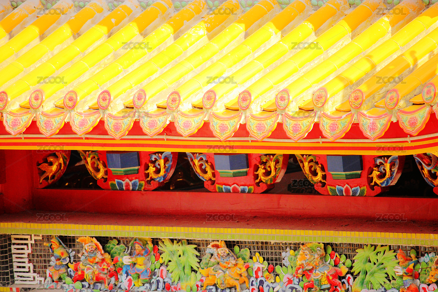 泉州关岳庙彩色剪瓷龙雕和屋顶
