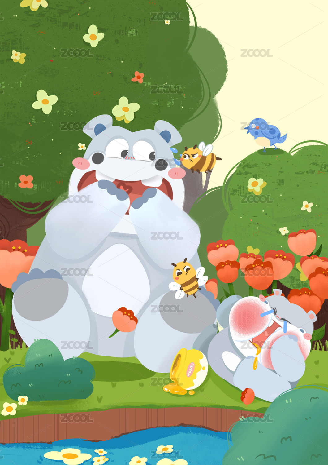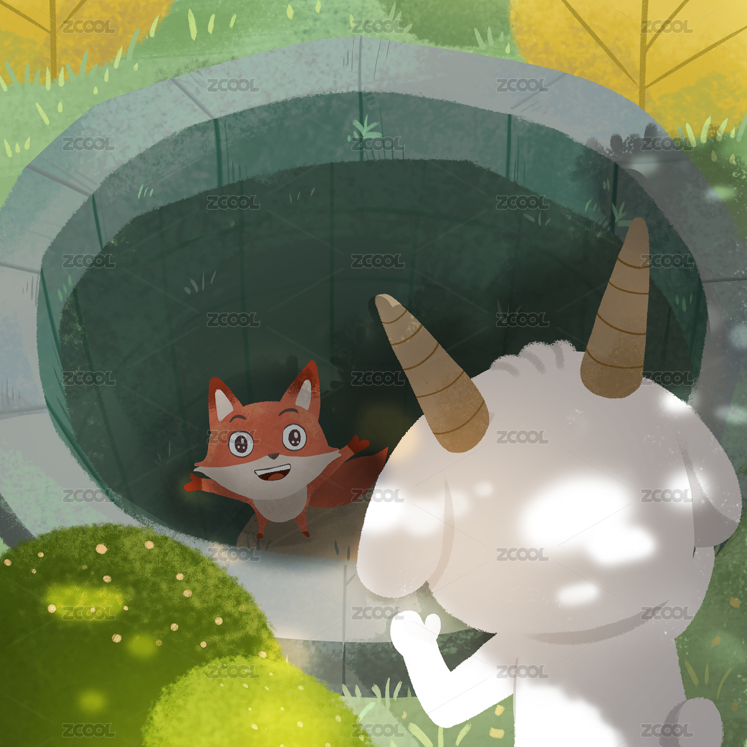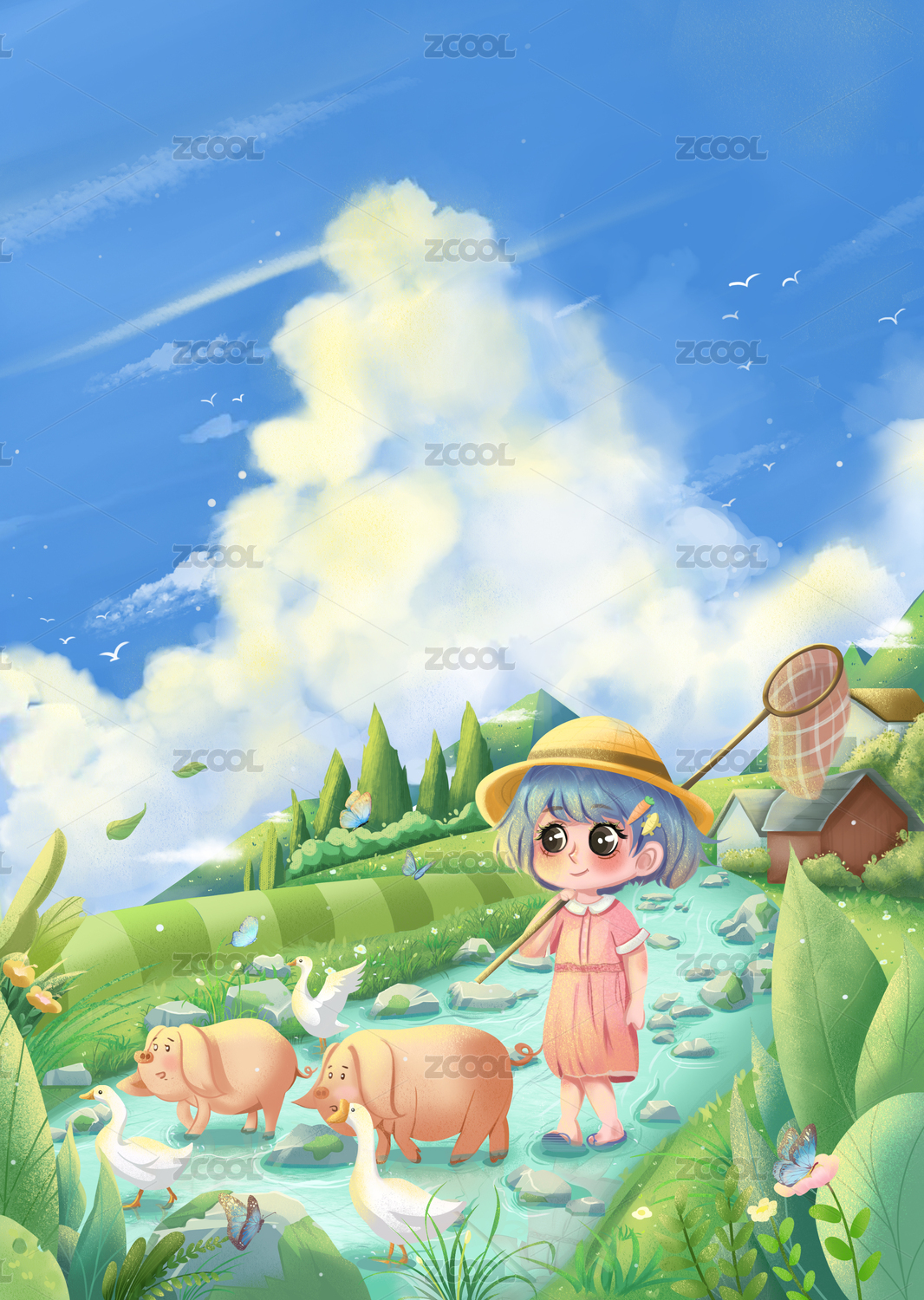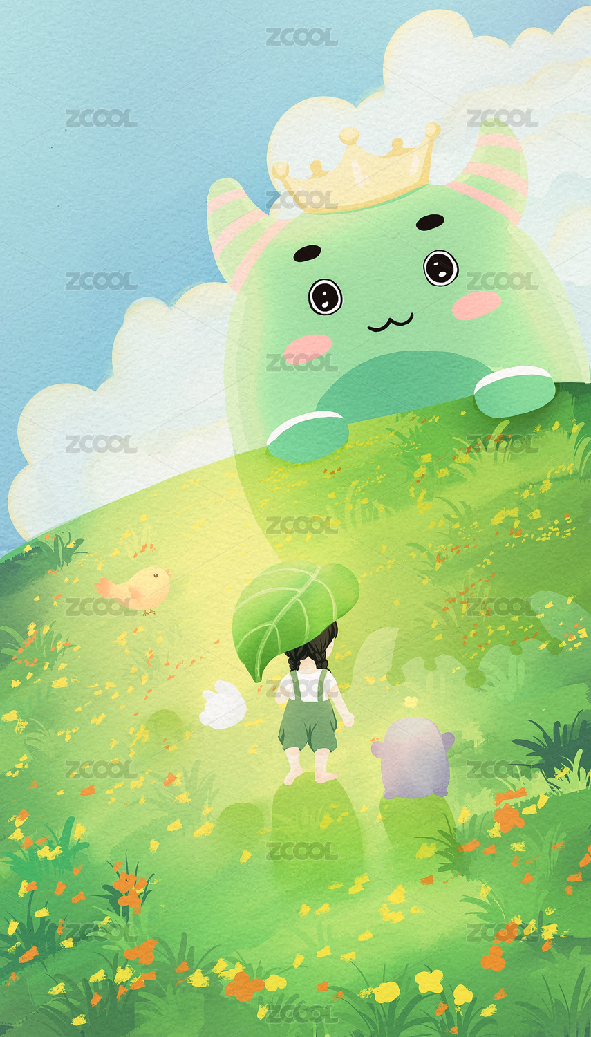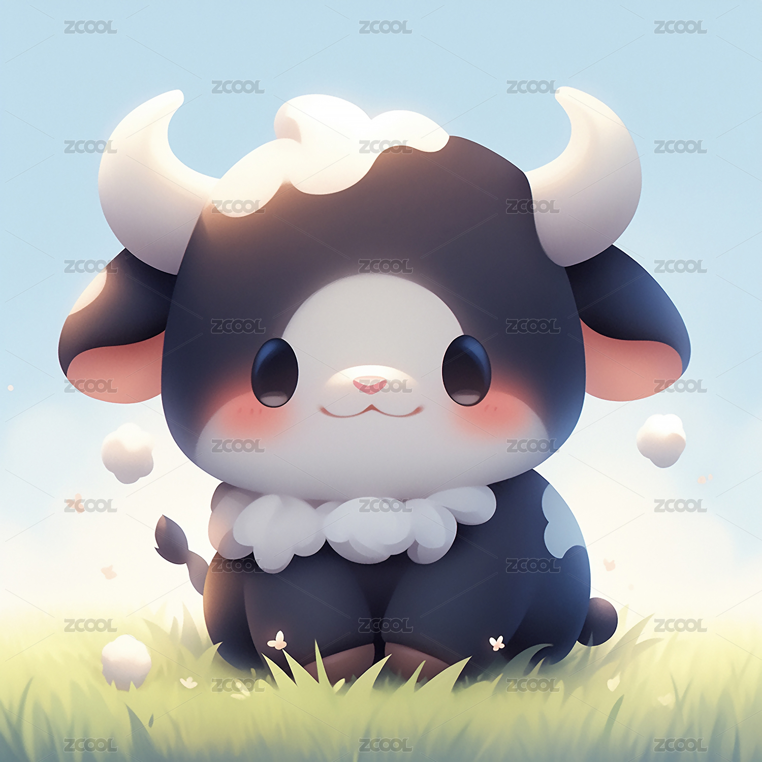 十二生肖之牛牛与小肥啾可爱小场景插画