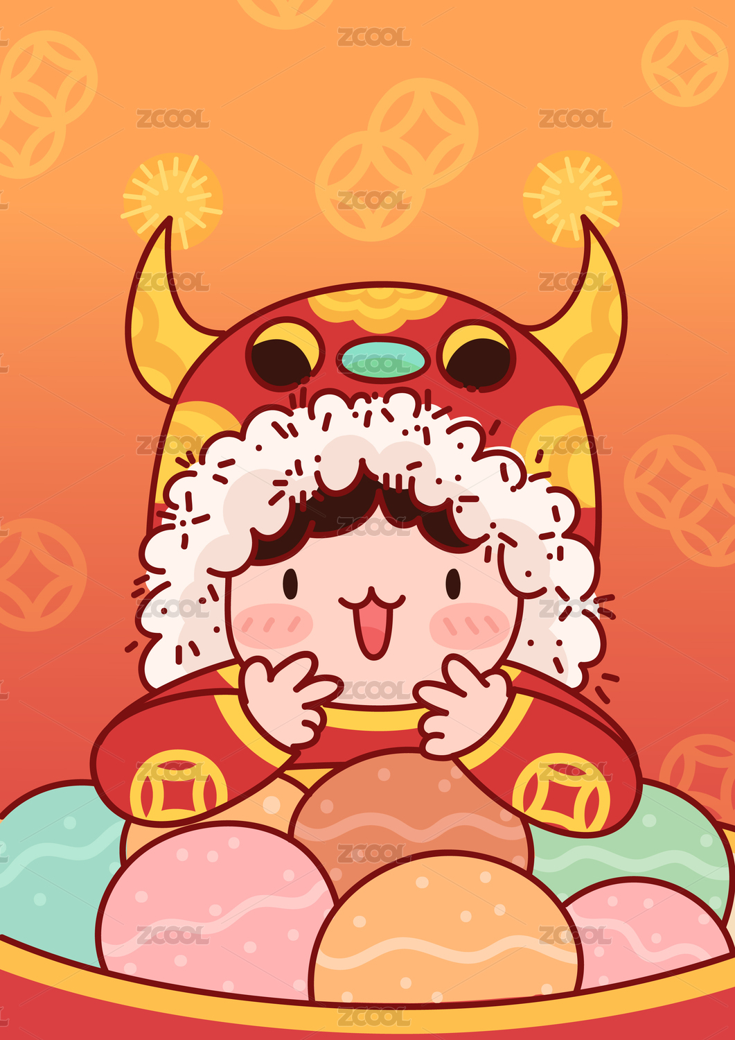 矢量可爱风戴着虎头帽的小孩在数汤圆