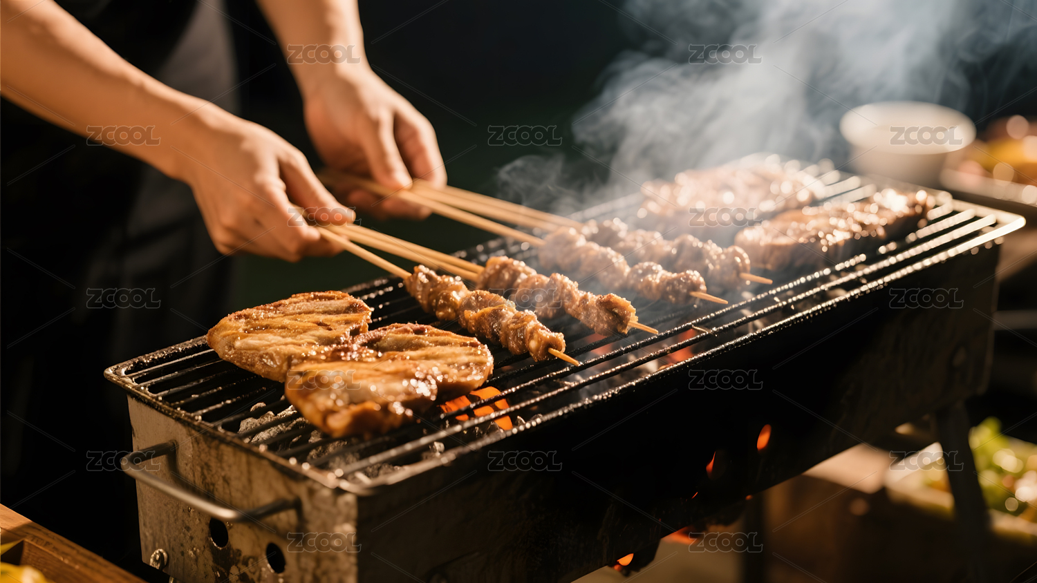 满是烟火气的烤炉上的鲜羊肉新疆红柳大串