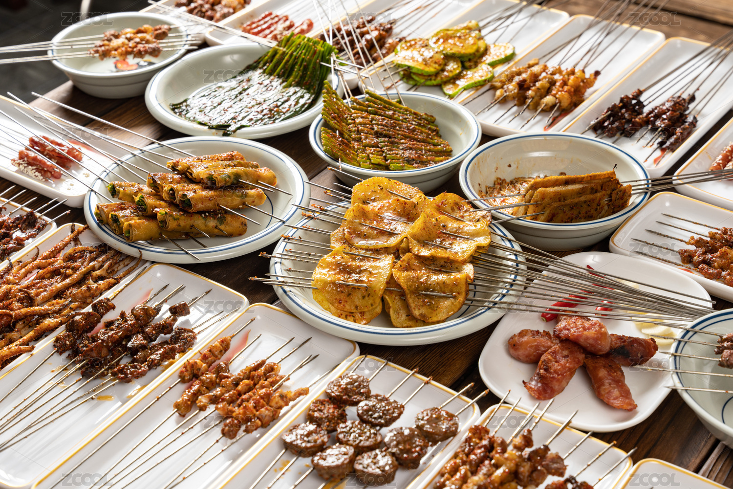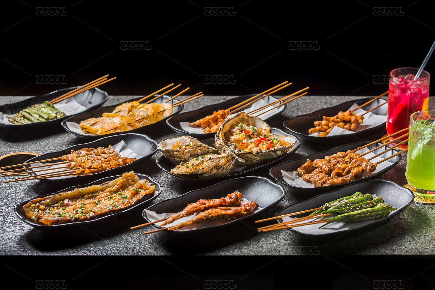 烤猪蹄,烤羊排,烤羊腿,香辣小龙虾,烧烤组合,烤串合图,撒粉烤串,烧烤串组合,炭烤拼盘,啤酒烤串组合