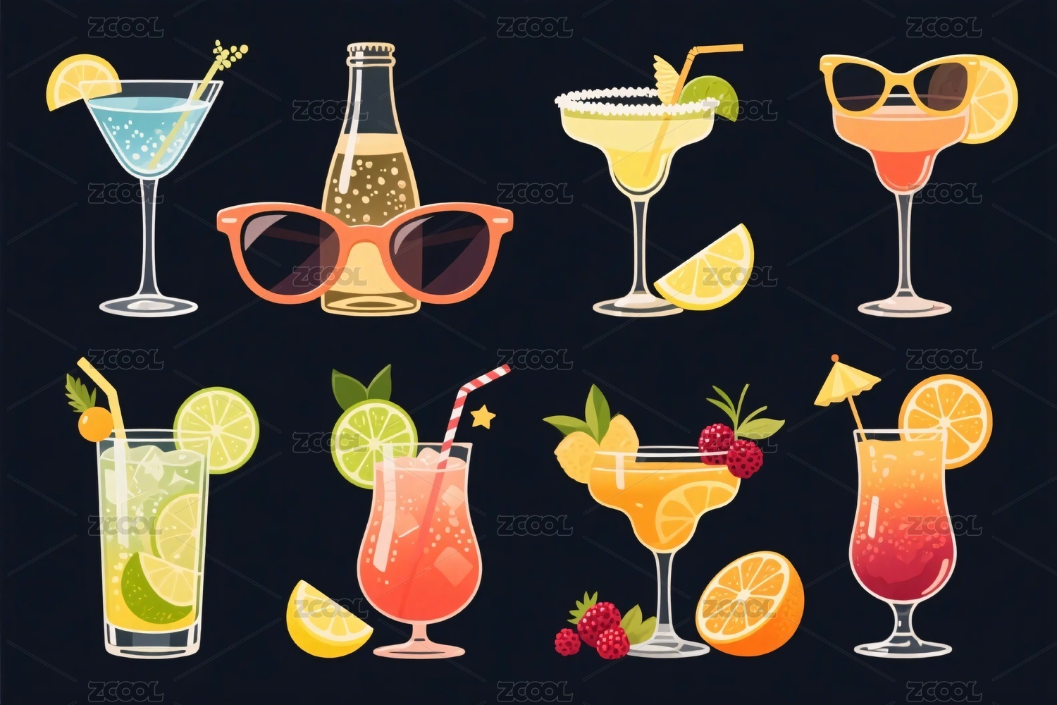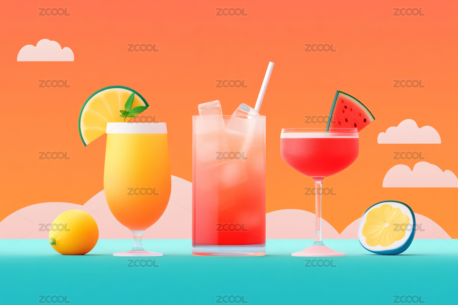 夏季水果茶饮料食品健康夏至节气清凉插画