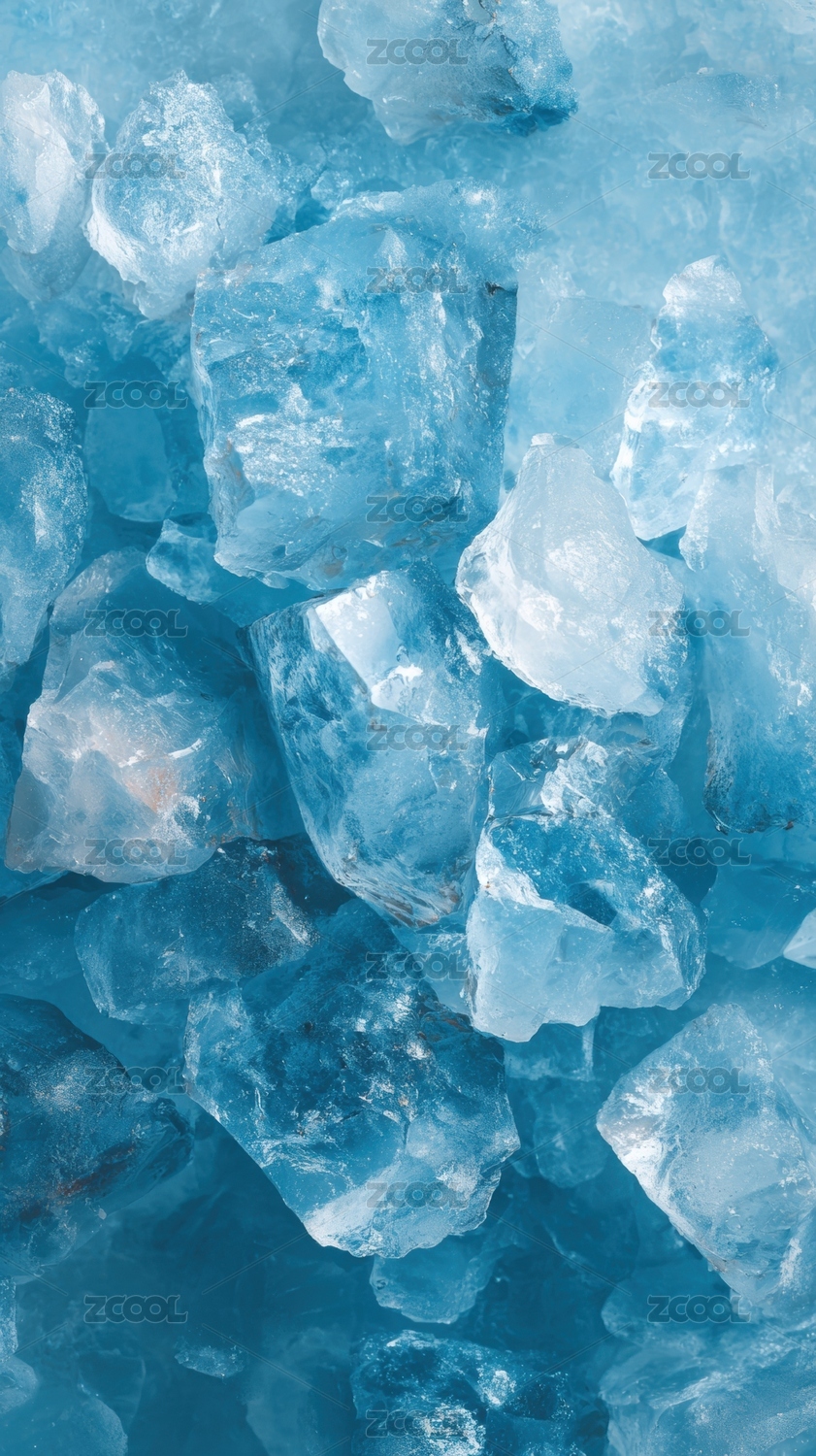 蓝色调的晶莹冰块画面
