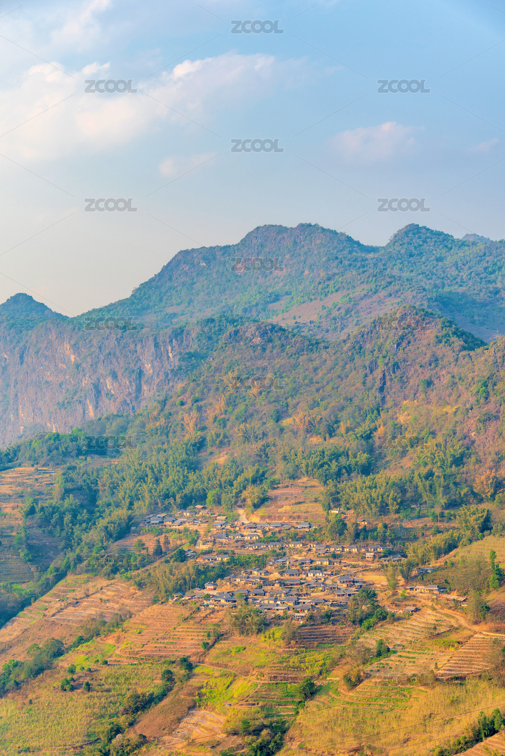 中国云南普洱西盟县山间村落风光
