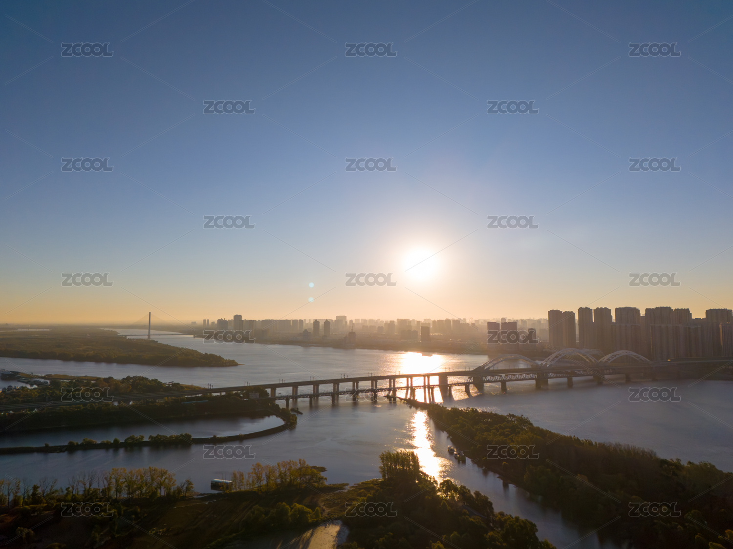 中国黑龙江哈尔滨阳明滩大桥航拍