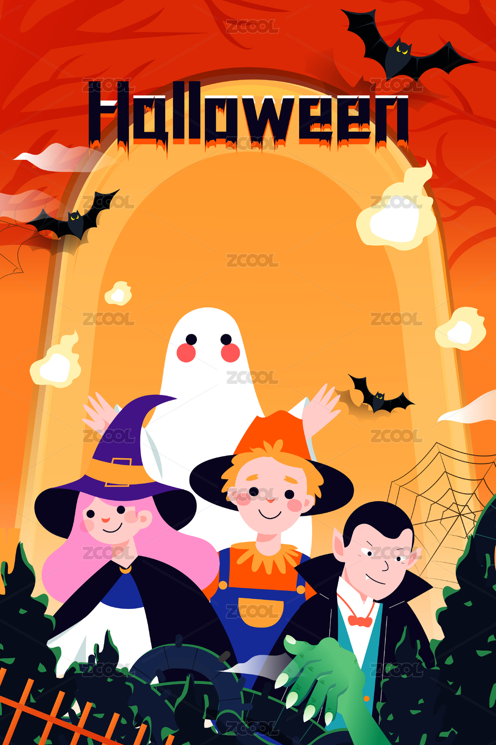 卡通手绘万圣节鬼怪巫婆闪屏插画