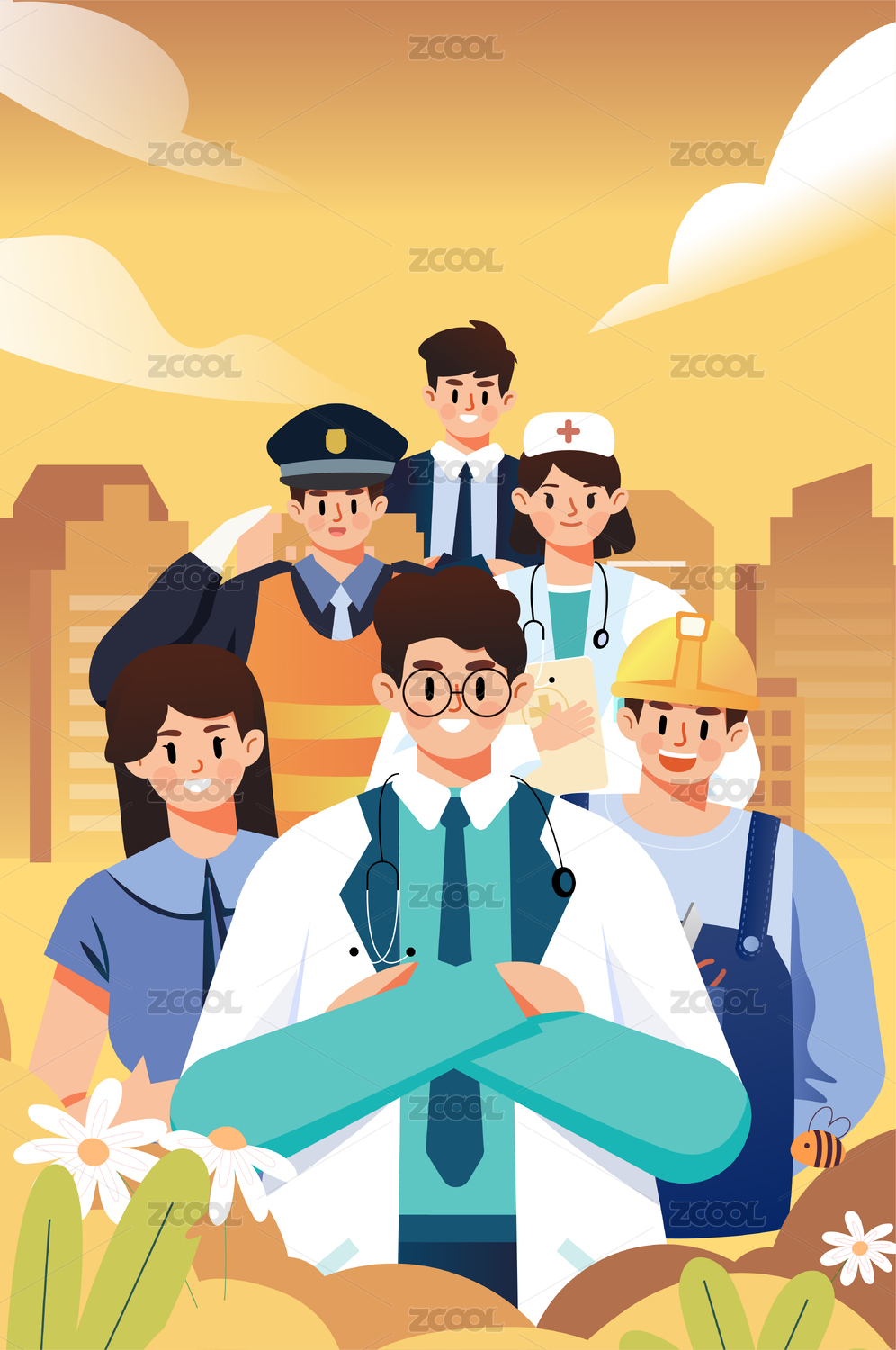 五一劳动节致敬职业劳动者插画人物劳动海报