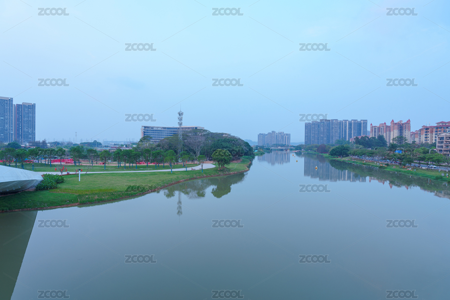 广州南沙蕉门公园蕉门河岸现代城市建筑群