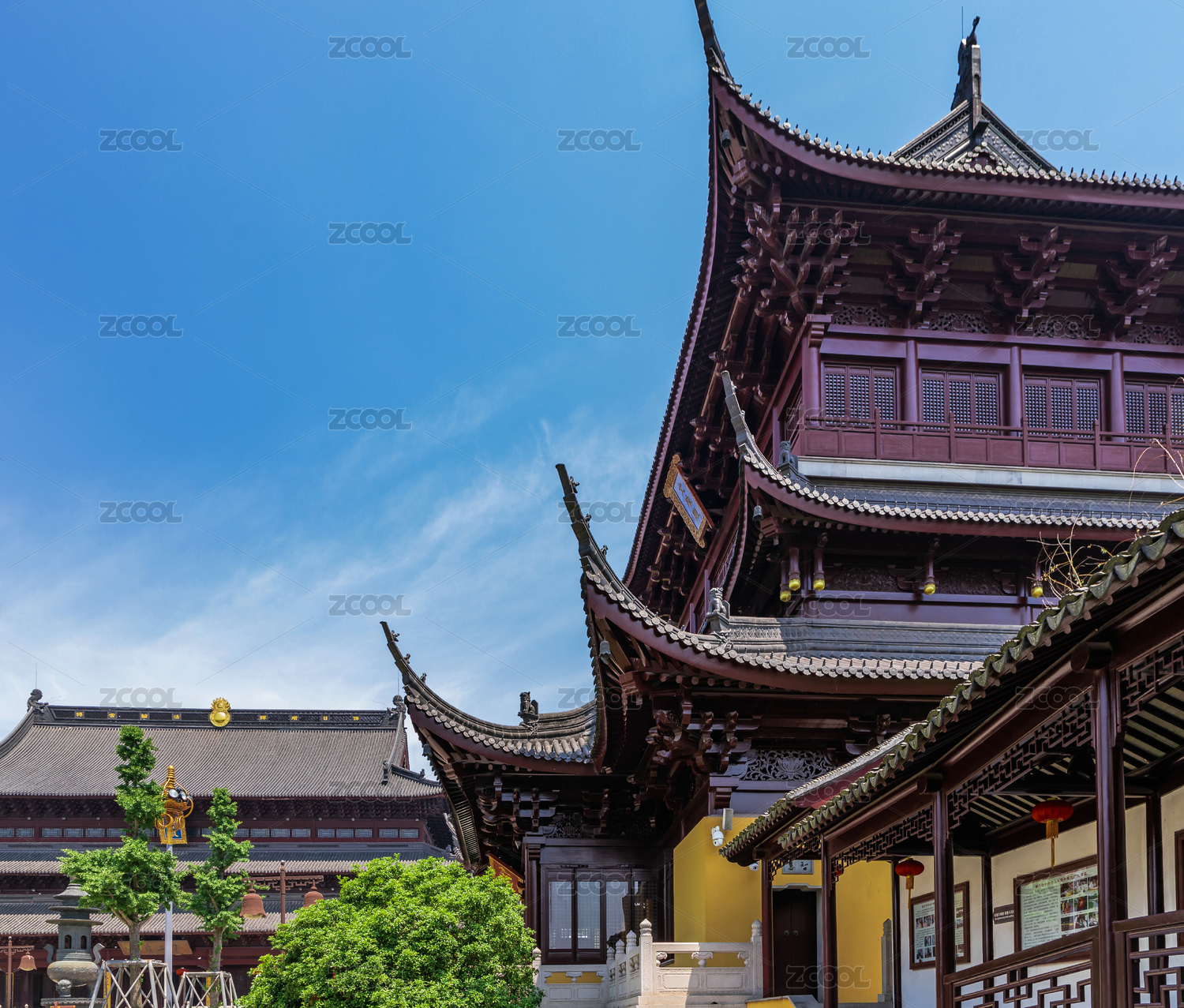 夏季白天航拍苏州张家港河南禅寺佛教建筑