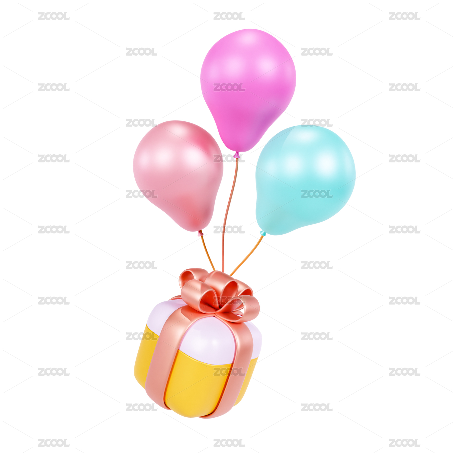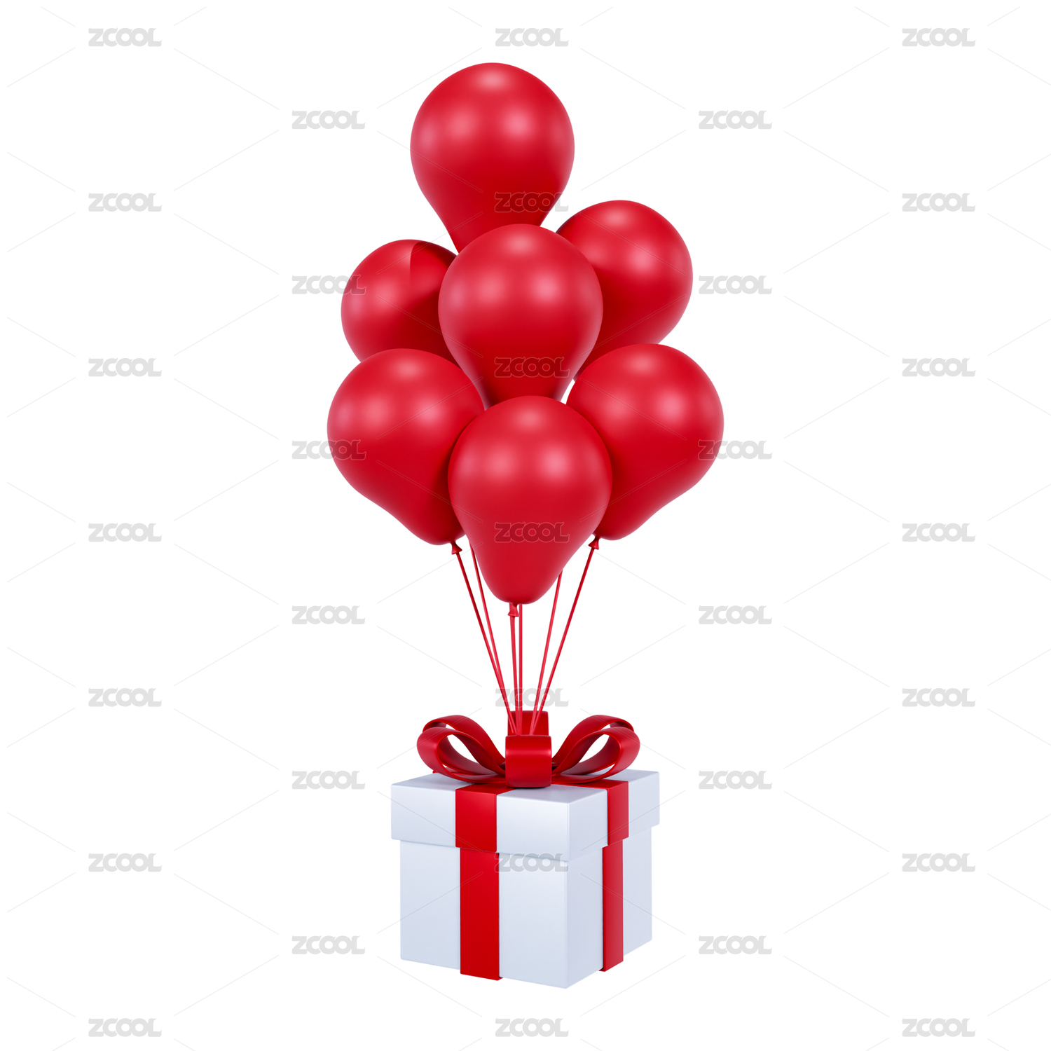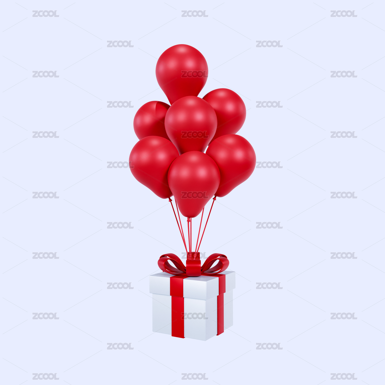 3D渲染的气球飞起来的礼盒情人节妇女节促