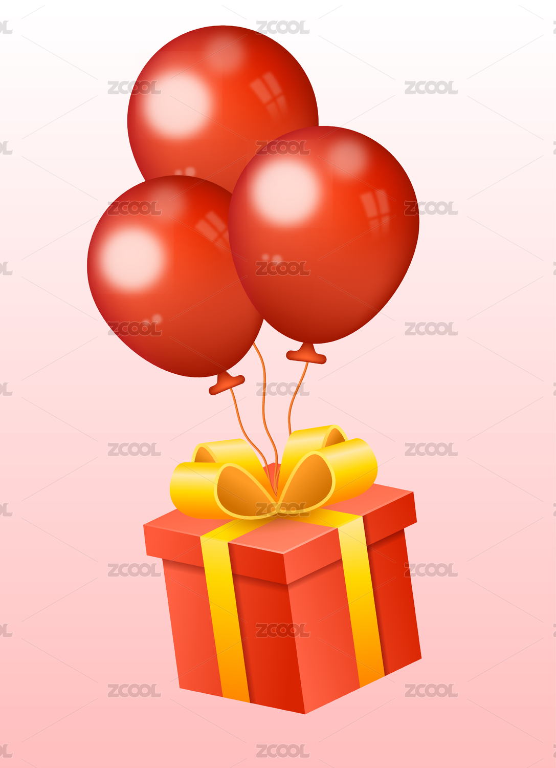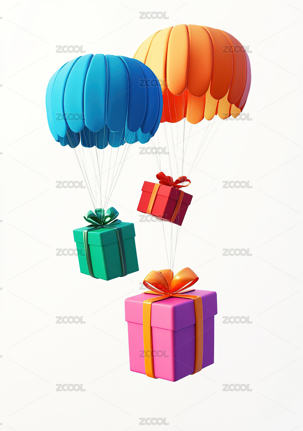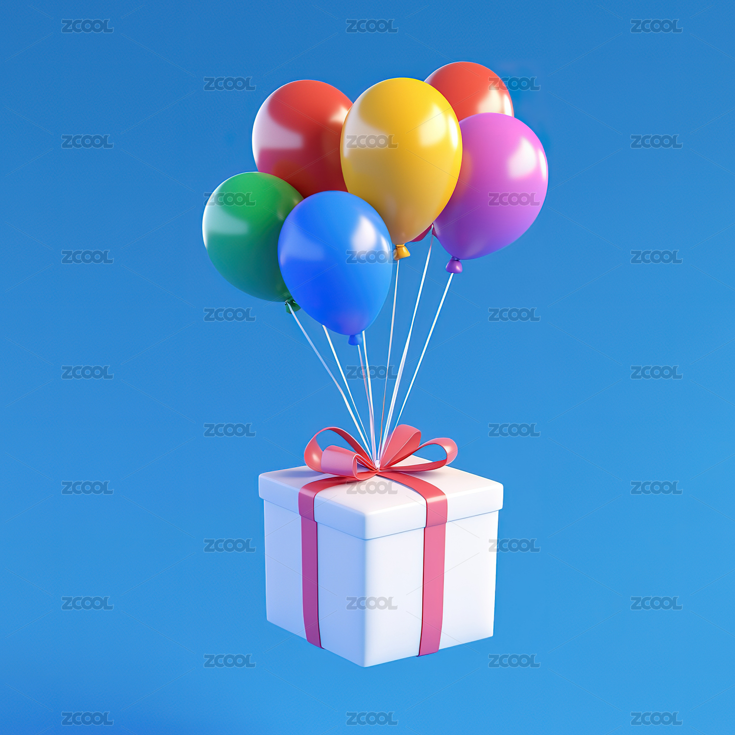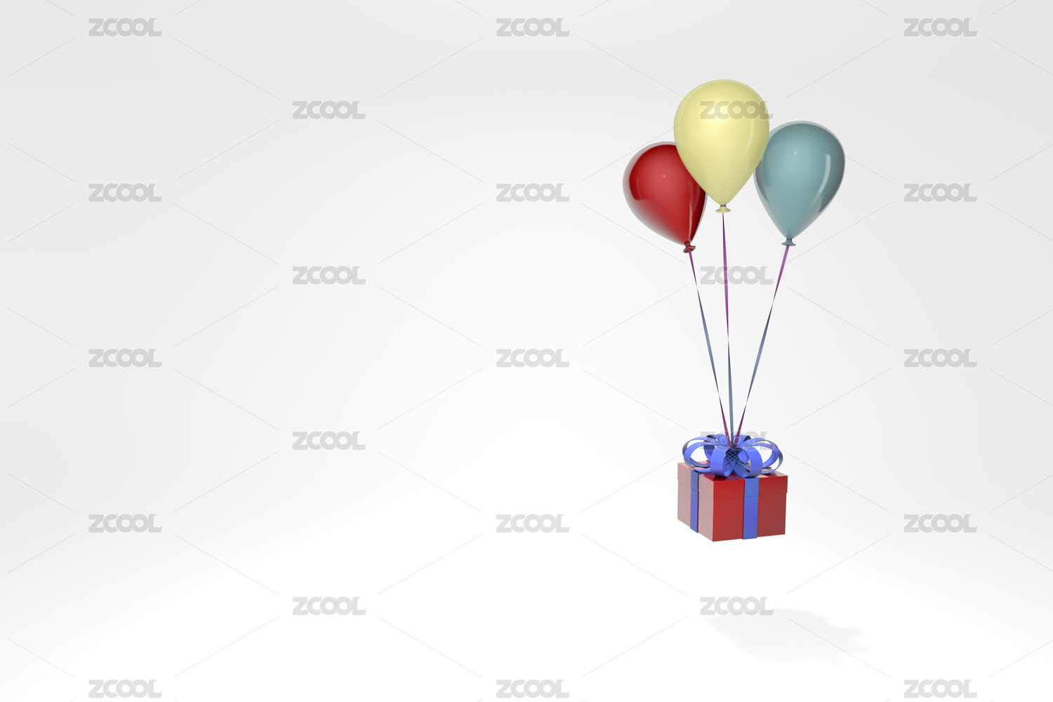 3D渲染的气球飞起来的礼盒情人节妇女节促