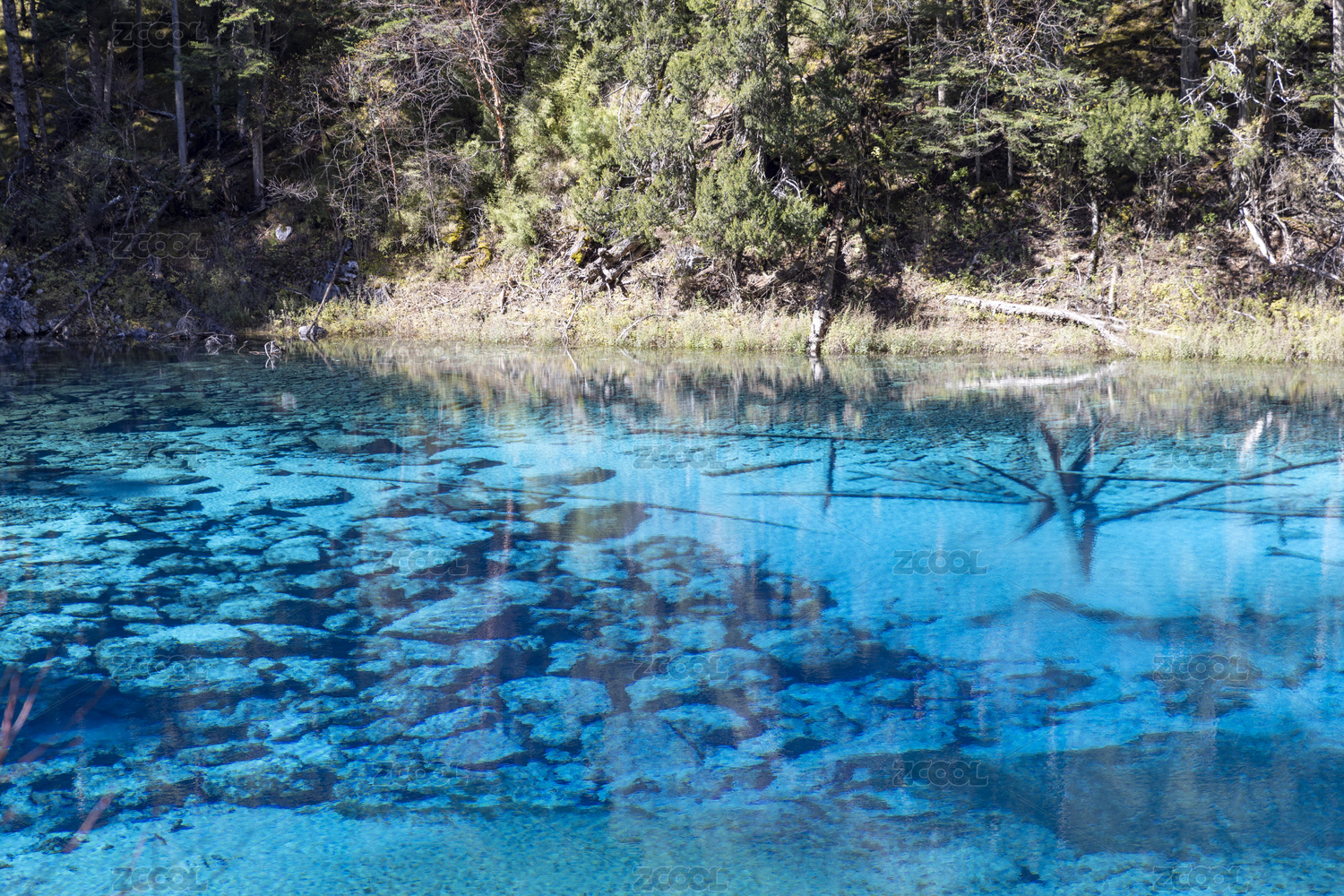 四川省阿坝九寨沟海子孔雀海及湖底的钙化木
