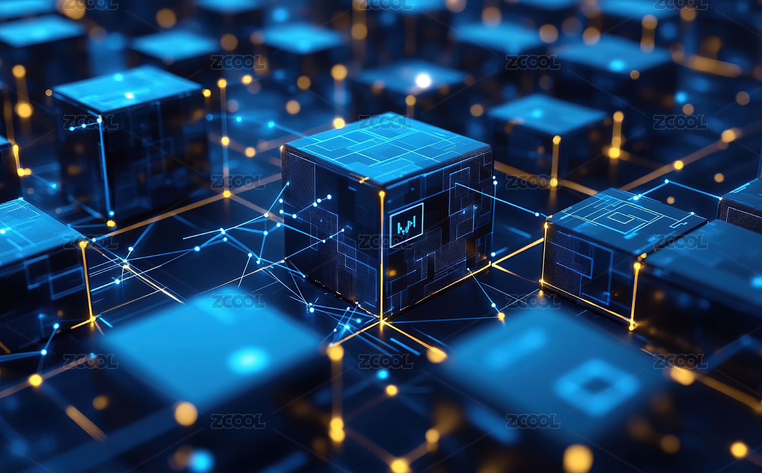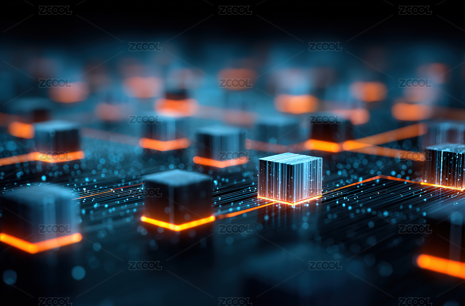 芯片金融科技赛博朋克人工智能三维渲染电路