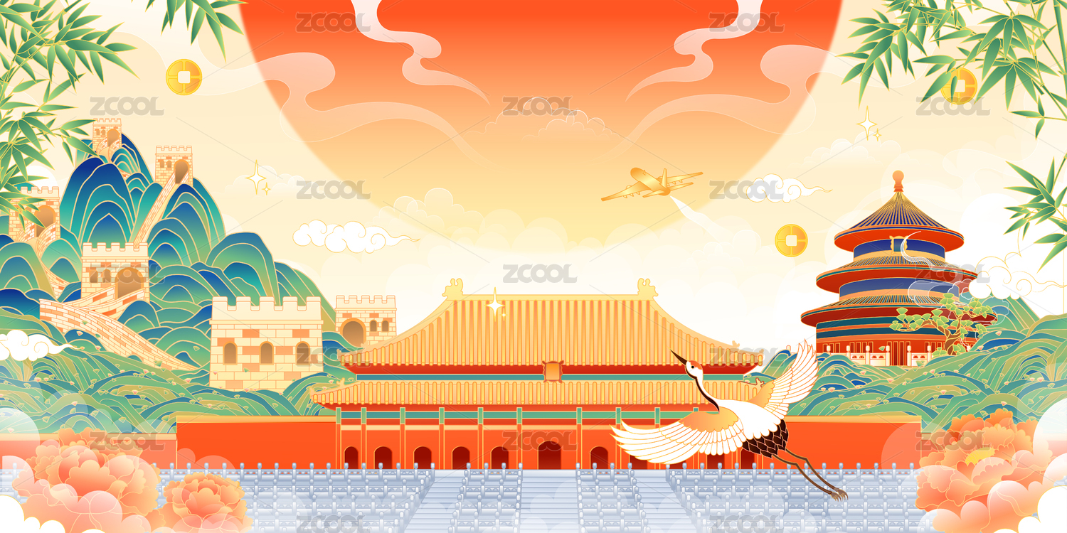 北京故宫长城天坛国风国潮插画