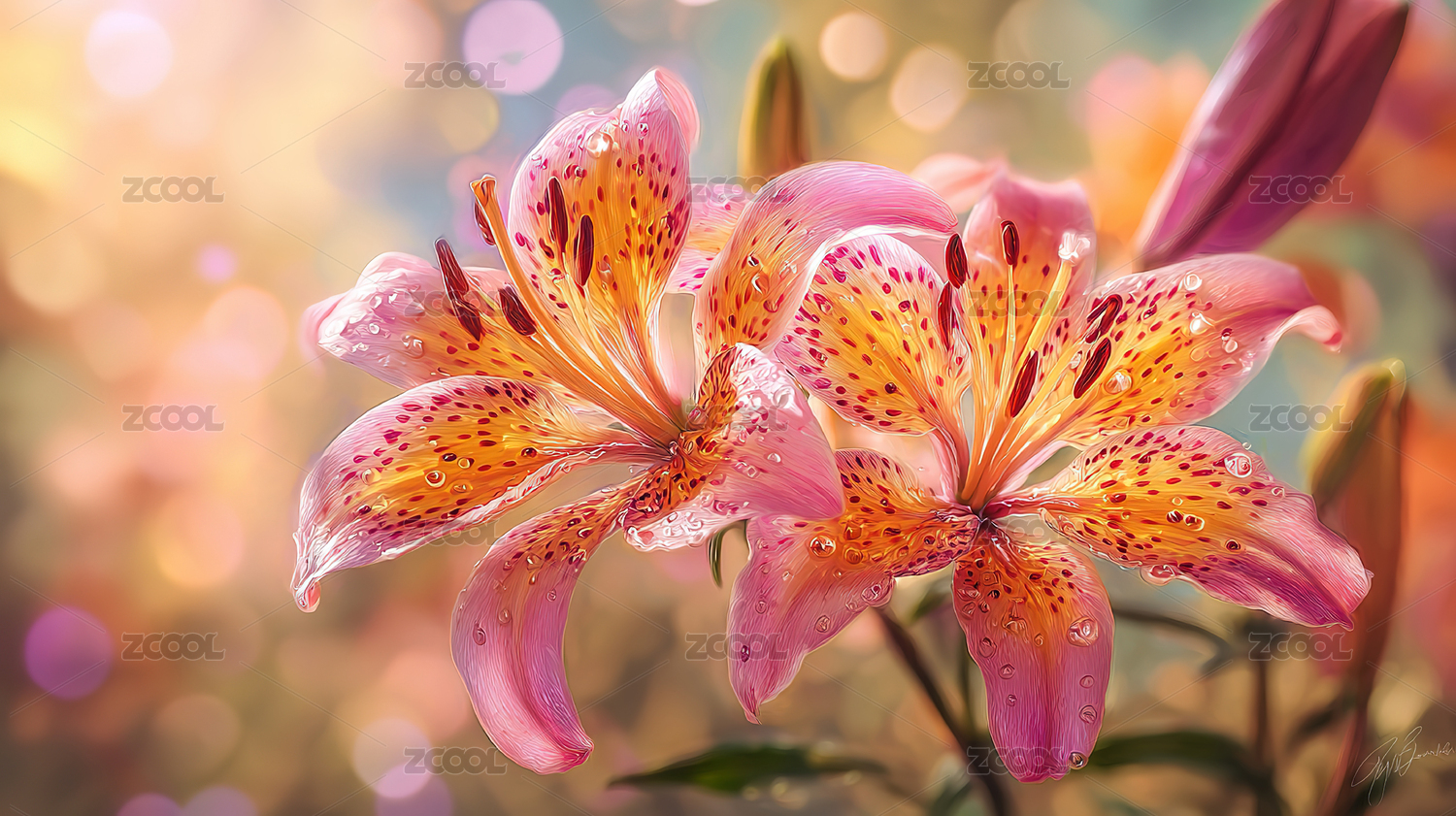 梦幻粉蓝百合花