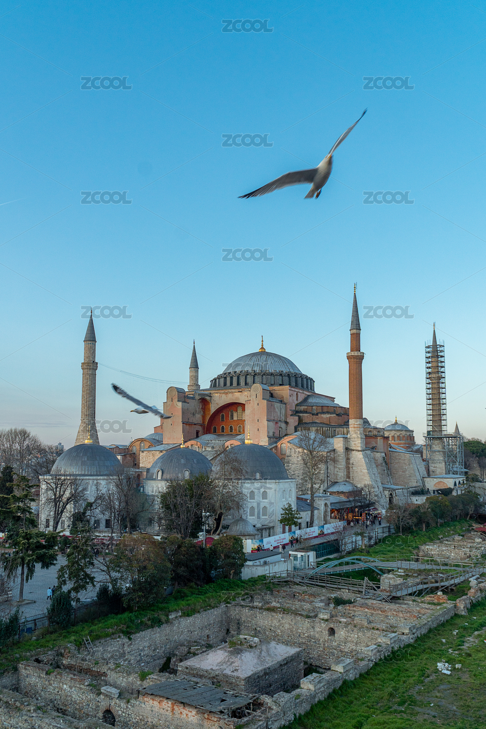 土耳其伊斯坦布尔新索菲亚大教堂海鸥