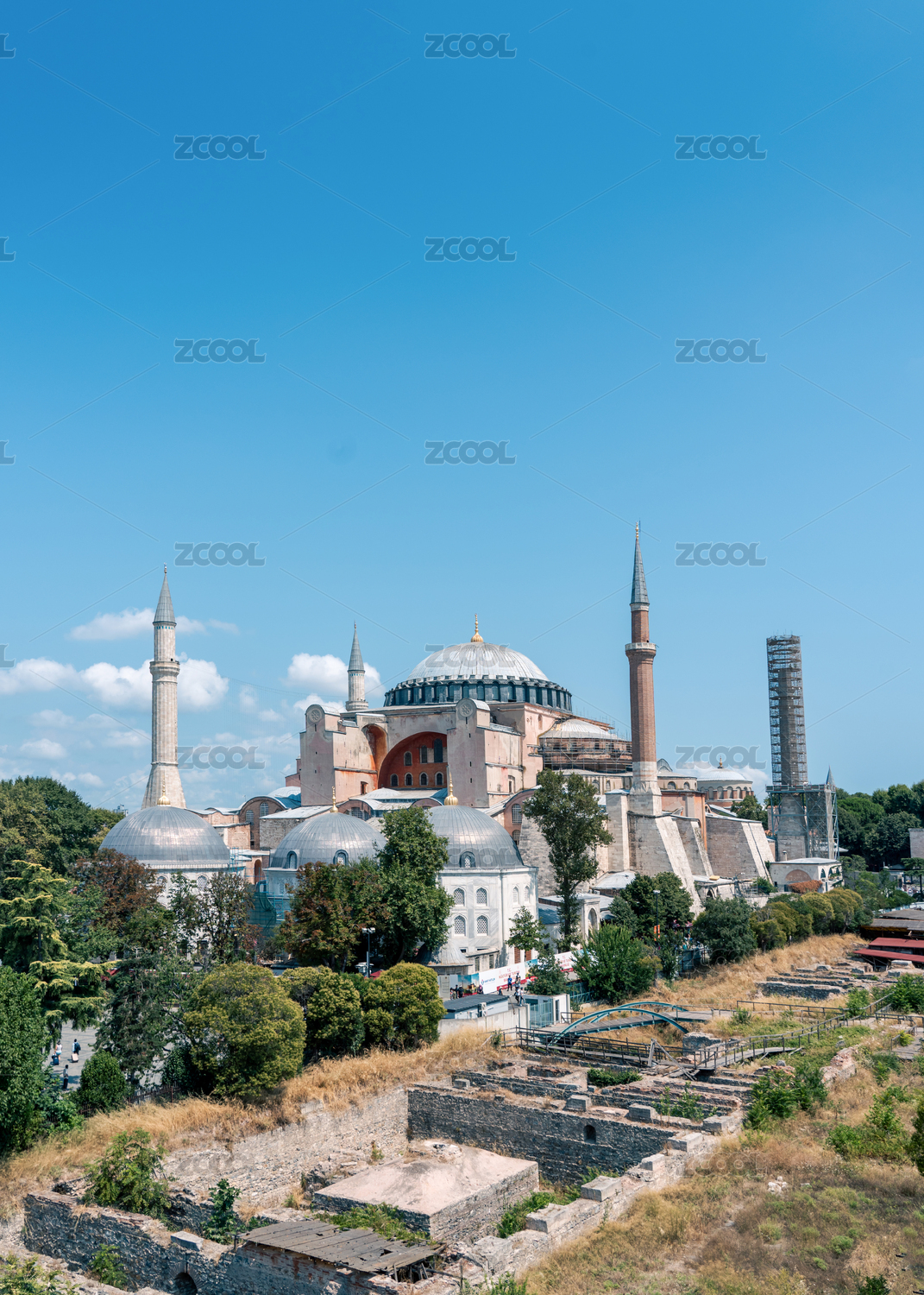 土耳其伊斯坦布尔索菲亚大教堂竖构图全景