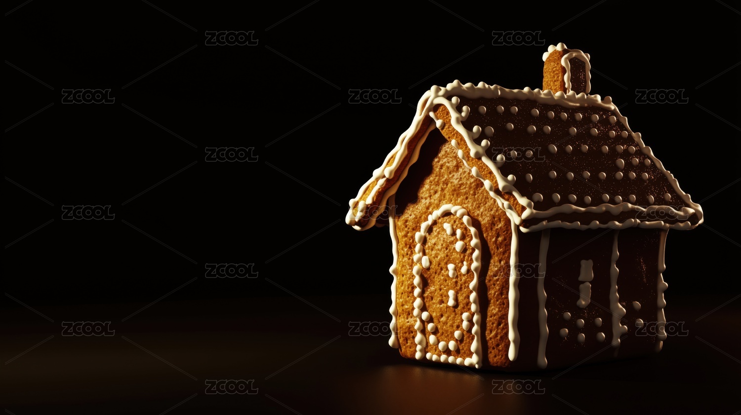黑底可爱圣诞节尖顶姜饼小屋饼干3D卡通画