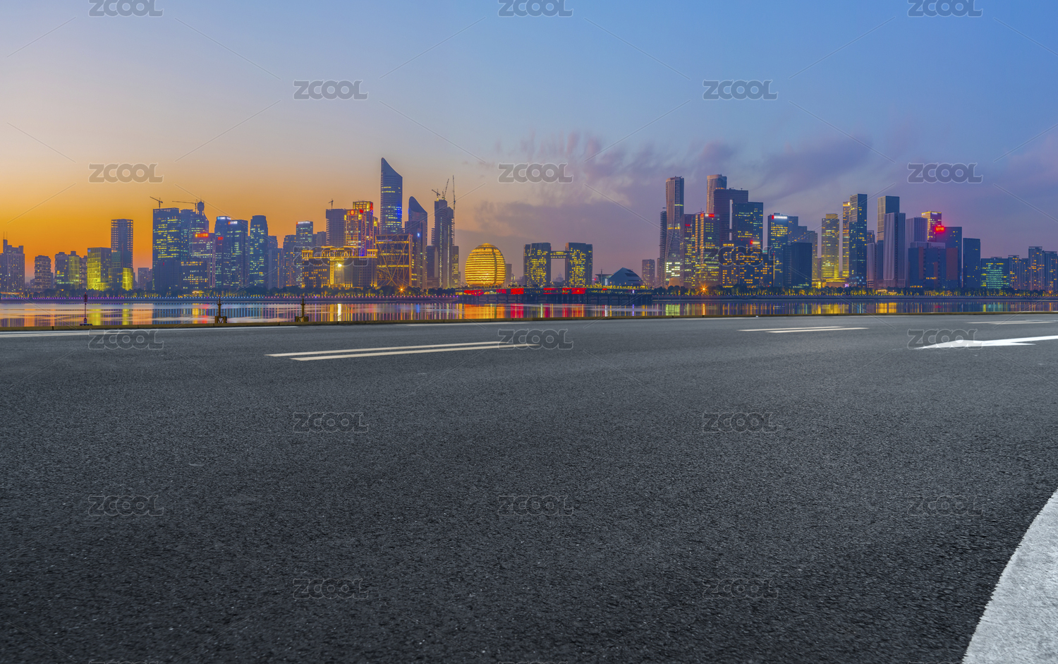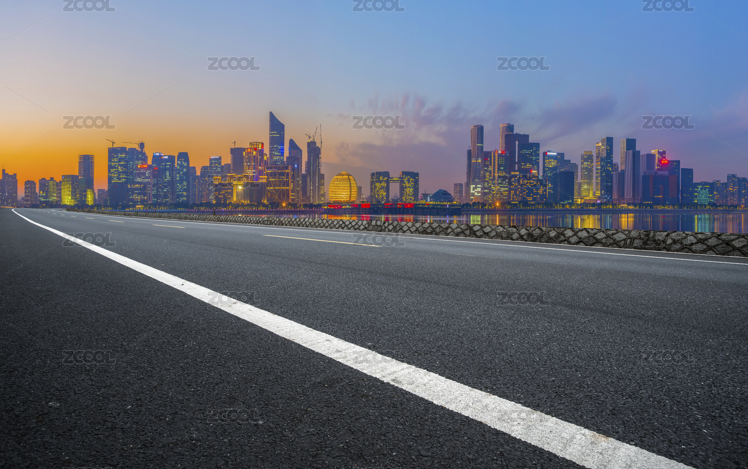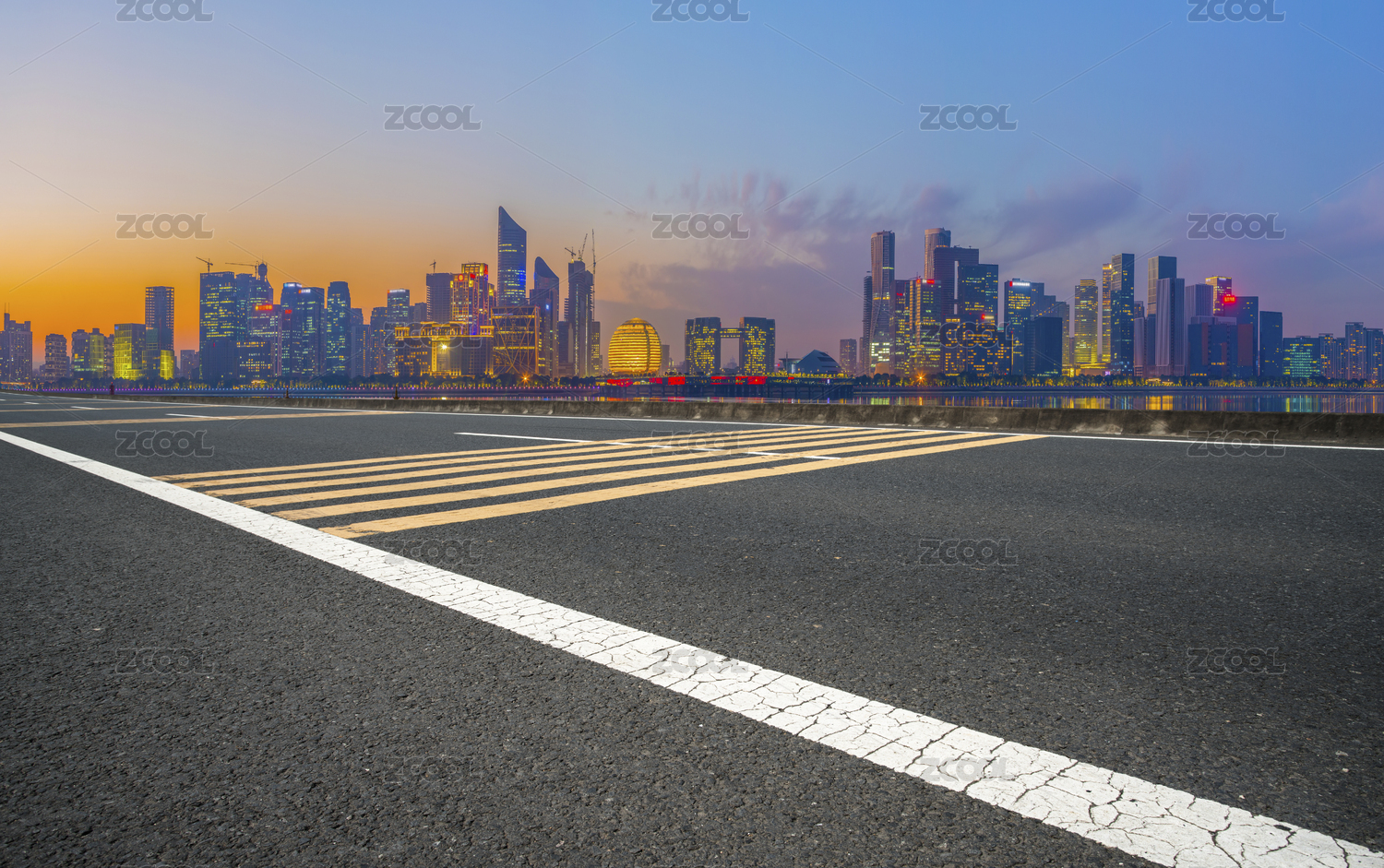 道路,街道,城市,天际线,沥青,地面,空置,建筑,金融,摩天大楼