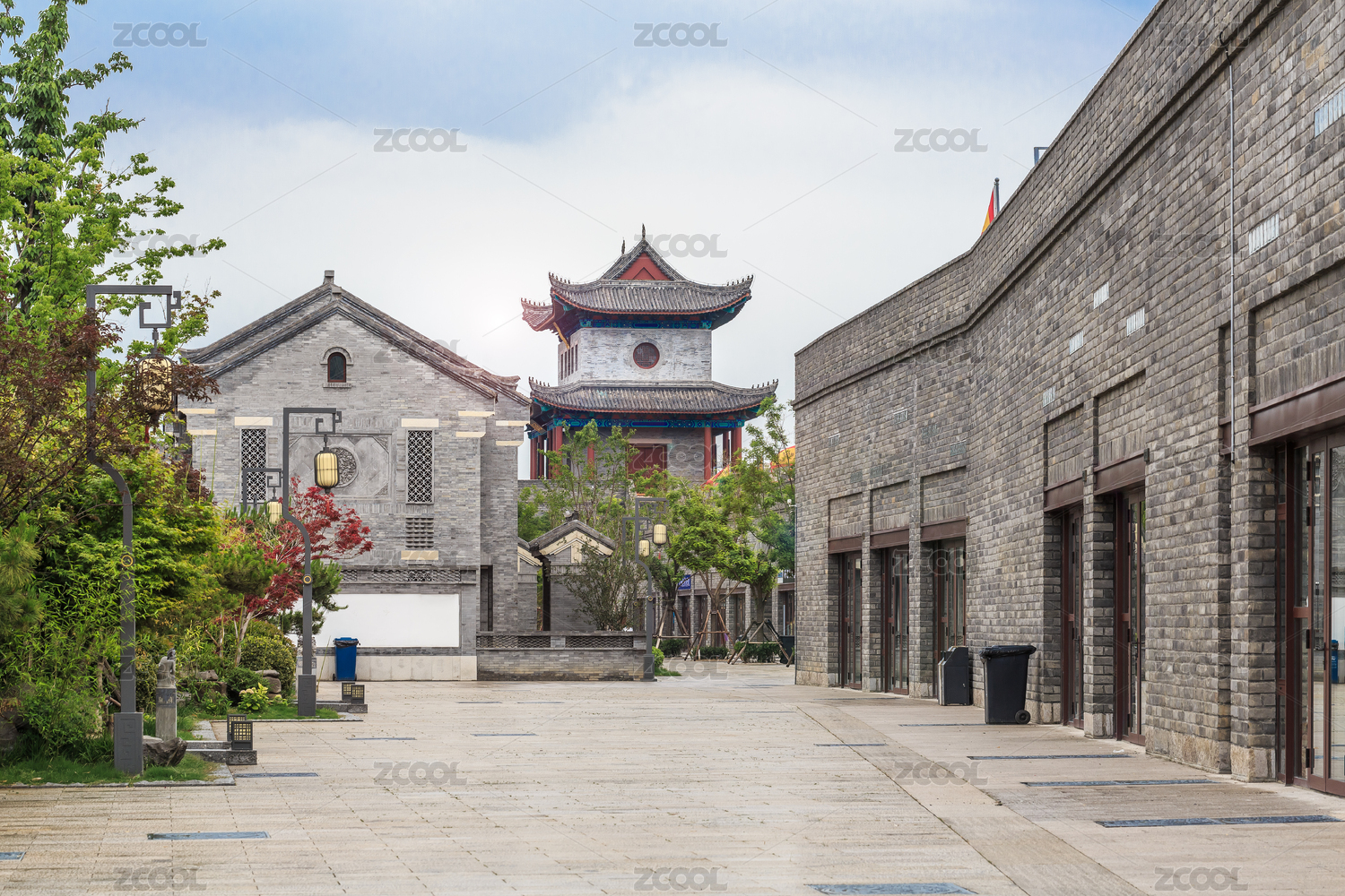 中国河南省商丘市月老公园阁楼廊亭园林建筑