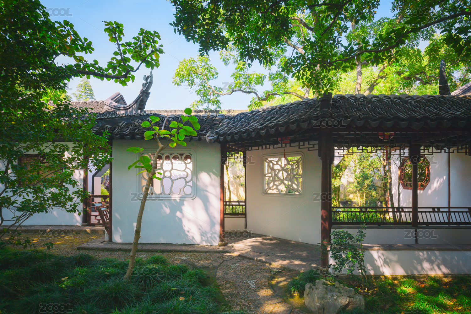 古建筑,园林,光影,树,夏季,古韵,江南,建筑,绿树,古典