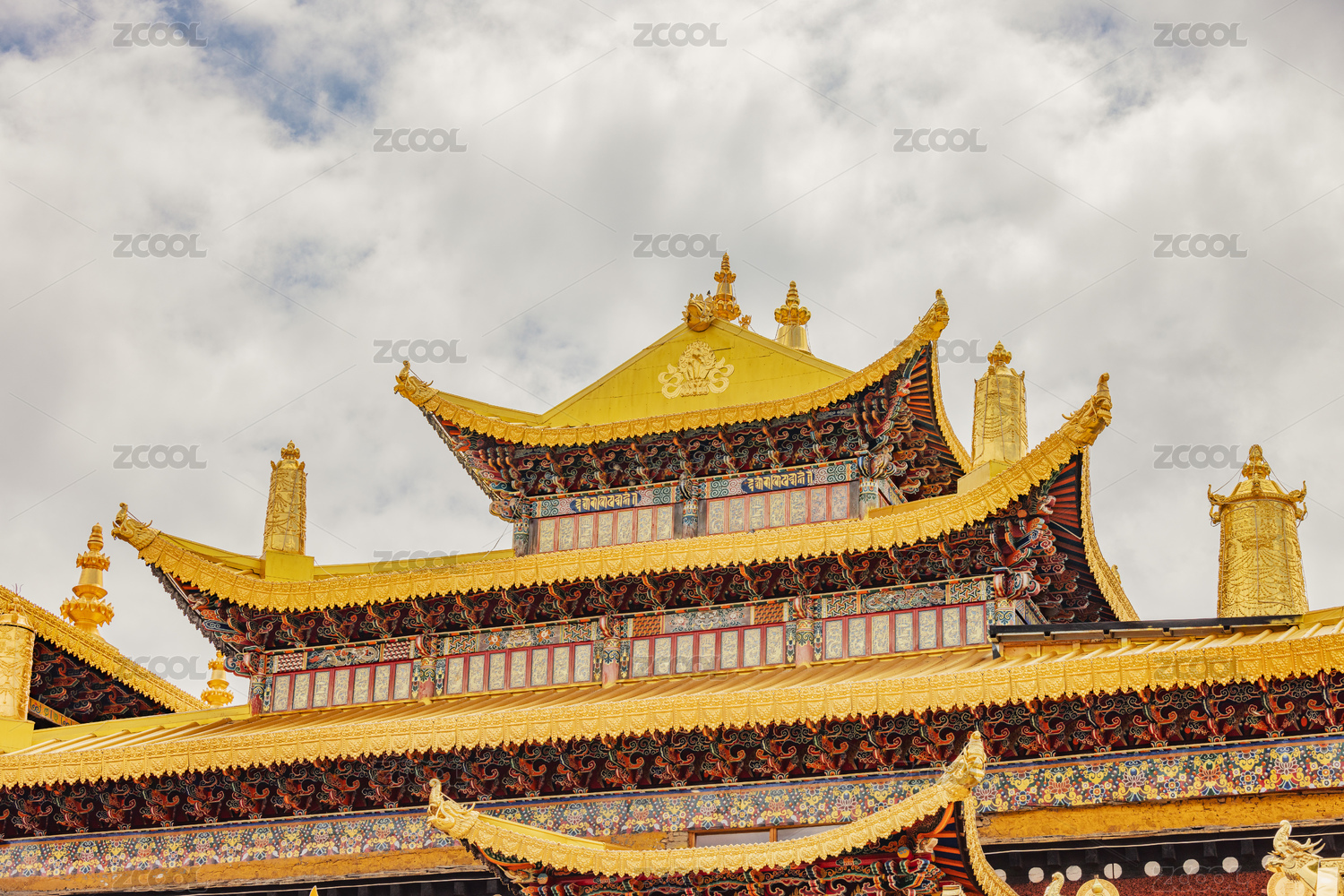 藏传佛教寺庙屋顶金饰-四川稻城县著杰寺