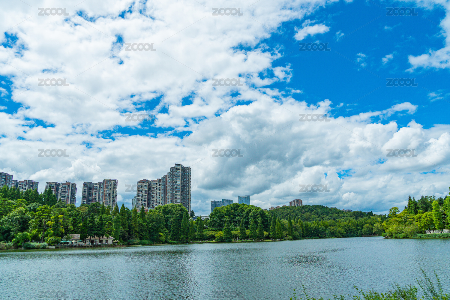 贵州省贵阳市观山湖公园湖泊绿化风光