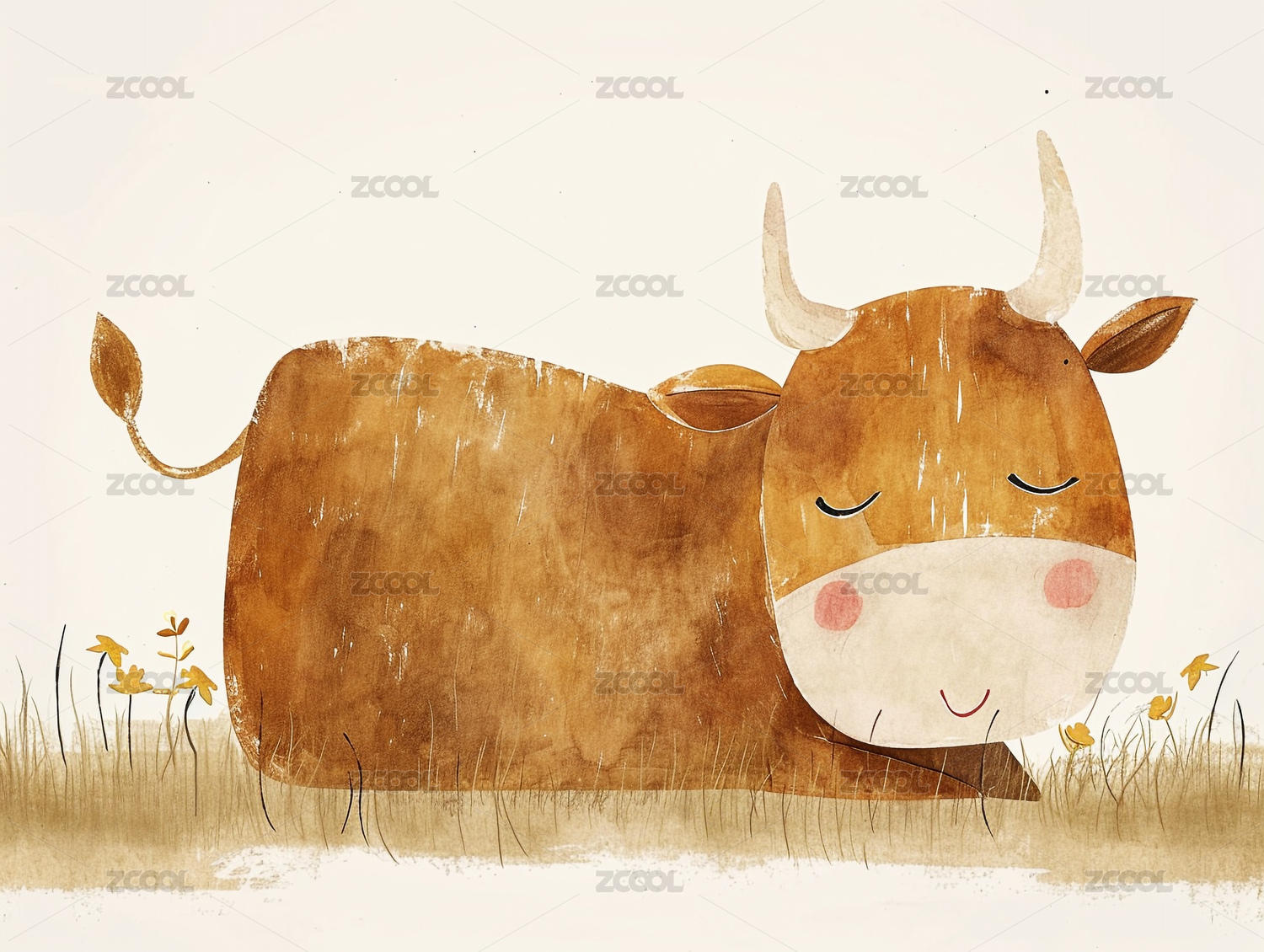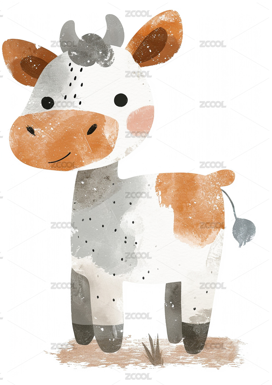 牛,插画牛,卡通牛,奶牛,母牛,漫画牛,插画,动物,家牛,牧场