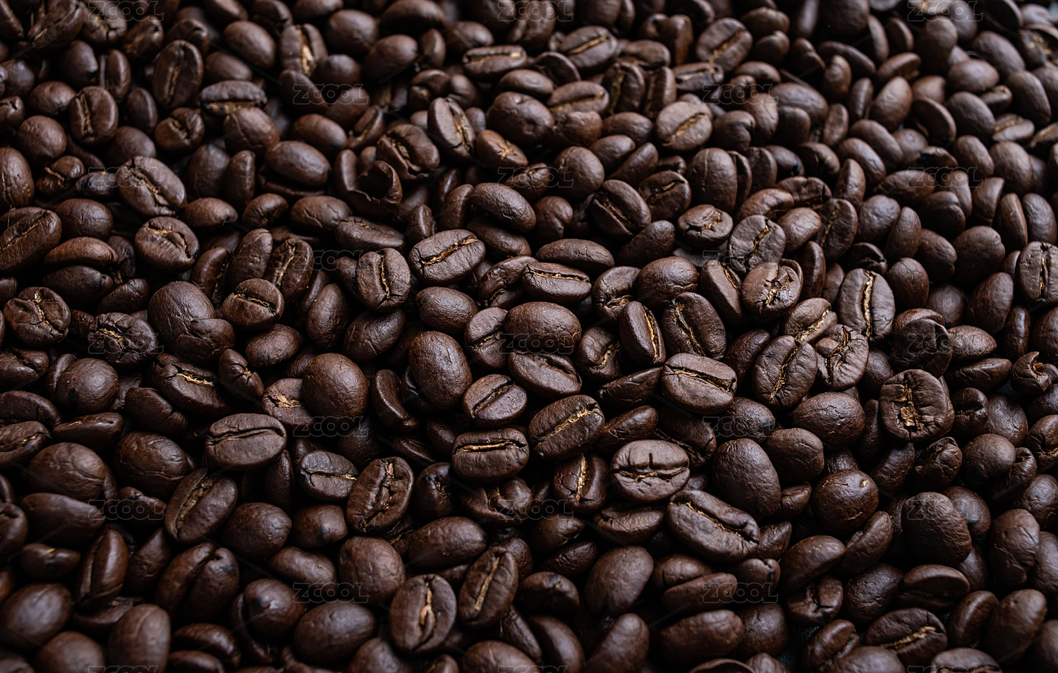 棕色香醇烘焙咖啡豆特写,咖啡背景